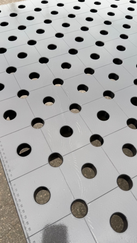 : neu : ca. 2 - 4 Wochen ab Auftr : 2022 €: 1500 x 1000 mm: 3000 kg: 272 kg: 100 mm: 12 mm: 16 mmTHIS MODEL FORMS THE BASIS OF THE ENTIRE SYSTEM. IT CAN BE EXTENDED ON ALL FIVE SIDES AS REQUIRED.Our tables are characterised by the high degree of hardness with our Cr75M+ hard chrome plating, the very high degree of accuracy of +/- 0.05 mm on the entire table surface and the tolerances of the hole diameters of the entire hole pattern.3D standard welding and clamping table,1500 x 1000 x 100 mm with Cr75M+ hard chrome platingTable system: 16 mmMaterial thickness: 12 mmIncluding table substructure and standard table legs S355J2+N with Cr75M+ hard chrome plating Hole: 16 mm, material thickness: 12 mm Including coated table substructure Side panel 100 mm with 2-row hole pattern and 25 mm hole spacing Table top with 2-sided fine scaling and 50 x 50 mm grid line Rounded edges and holes S ...