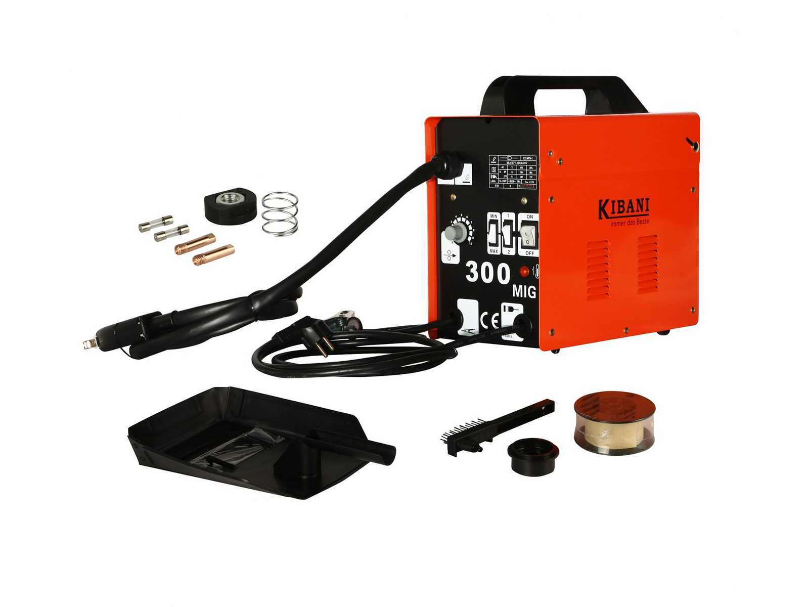 Weight 14 kg, Dimensions 42 × 28 × 33 cm, Power source electric, Voltage/Frequency 220V/50Hz, No-load Voltage 55 V, IP-Code IP 21 S, Efficiency 85%, Cable length 2 meters, CE certifications, Model MIG300 Brand Kibani Auction-ID: A1-40417-210