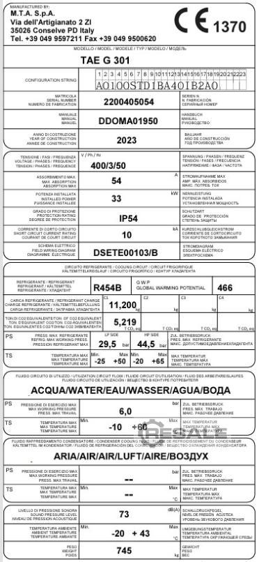| 2023 | MTA | TAE G 301 P3-20 – R454B | |