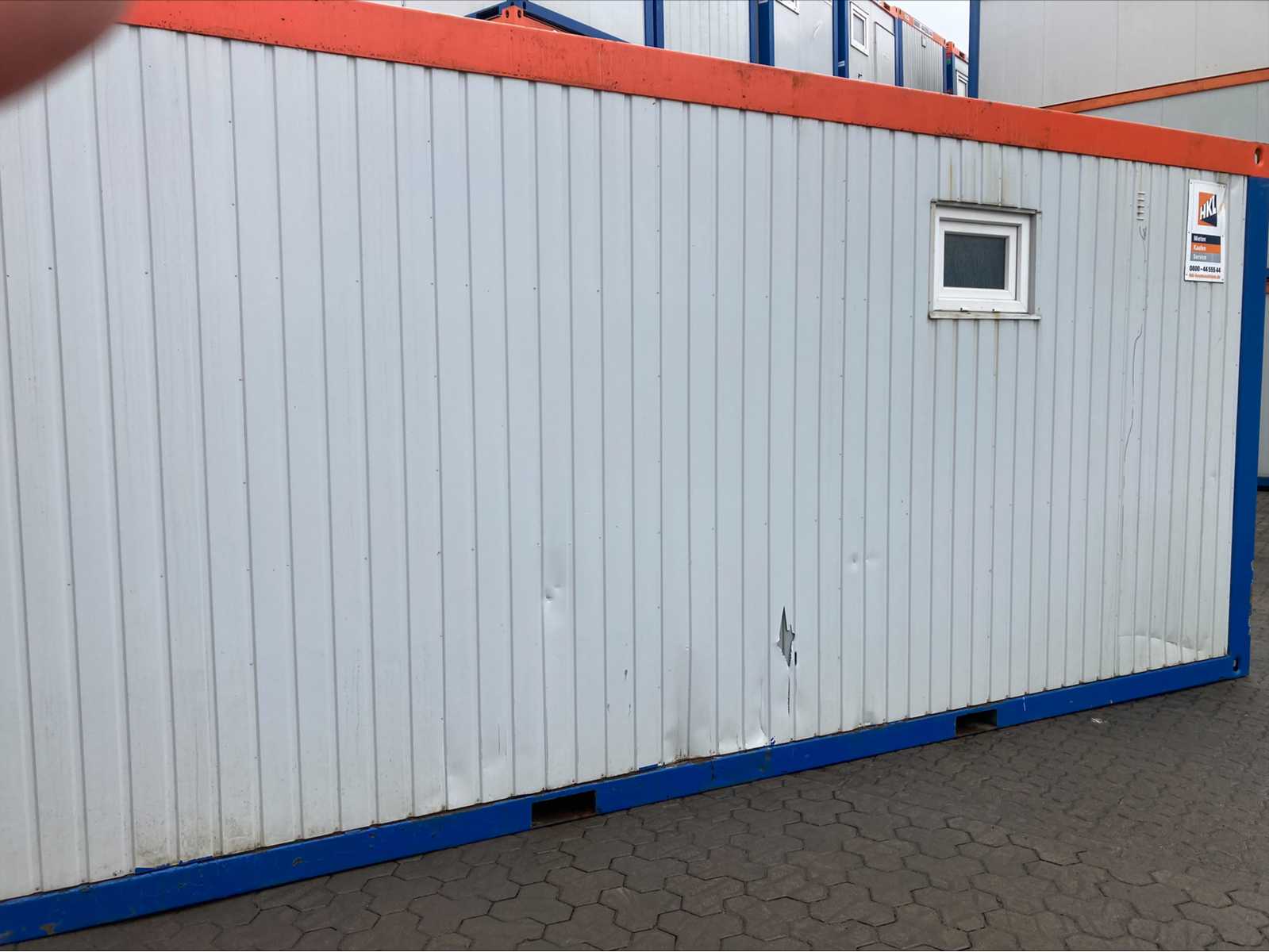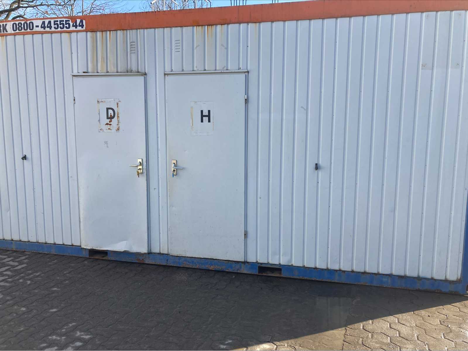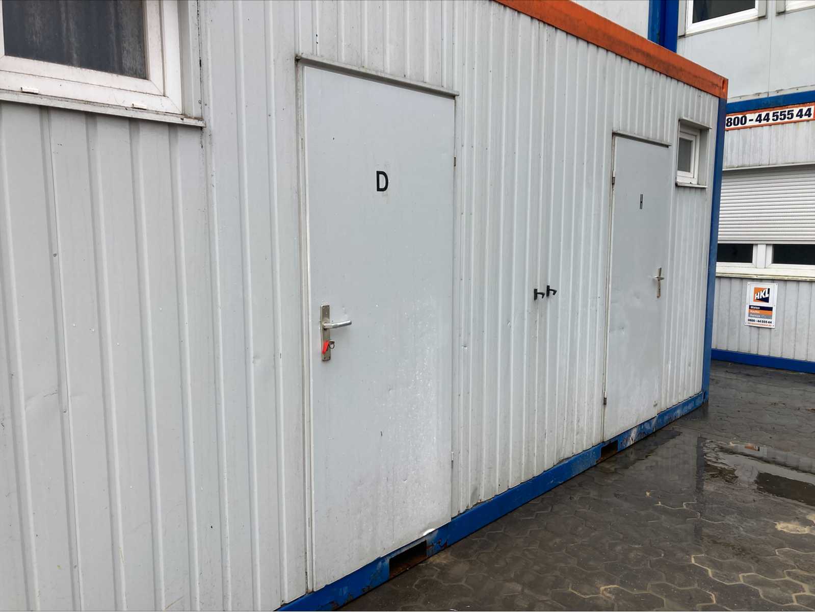 Specifications External dimensions: 6,058 x 4,976 x 2,800 mm Shipping: Non-shipping BDF System: Yes Tight-welded steel frame: Yes Frame: DIN-ISO Handling: Connectable, Stackable, Craneable Forklift pockets: 2055 mm Floor: PVC flooring Interior colour RAL: 9010 Exterior colour RAL: 9010 Security: Profile cylinder lock Electrical: Electrical installation, ceiling lights, switches & sockets, outdoor socket: CEE 32A 5P 400V, fuse box, RCD SWITCH according to VDE EnEV-compliant: No Ventilation: Forced ventilation Heating: Yes Material inner wall (cladding): PVC Doors: Without vestibule Number of doors: 1 Exterior door: steel Number of windows: 4 Sanitary facilities: No Auction-ID: A1-44751-31