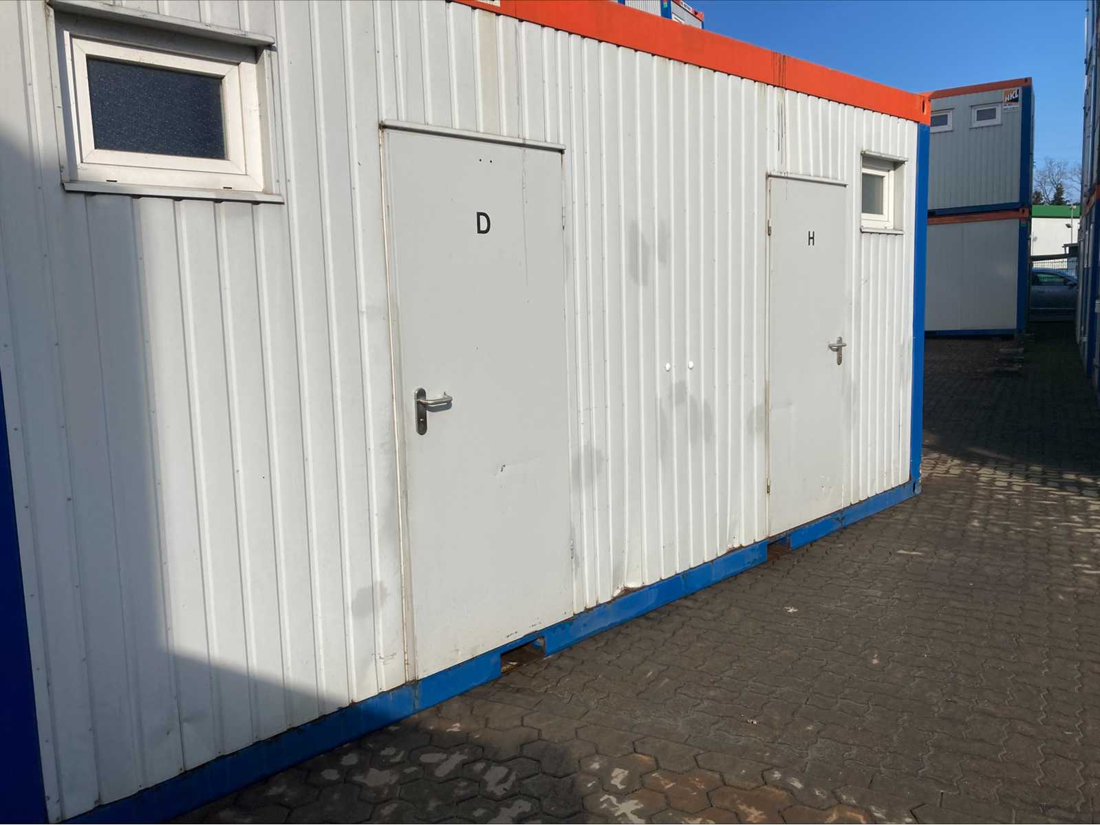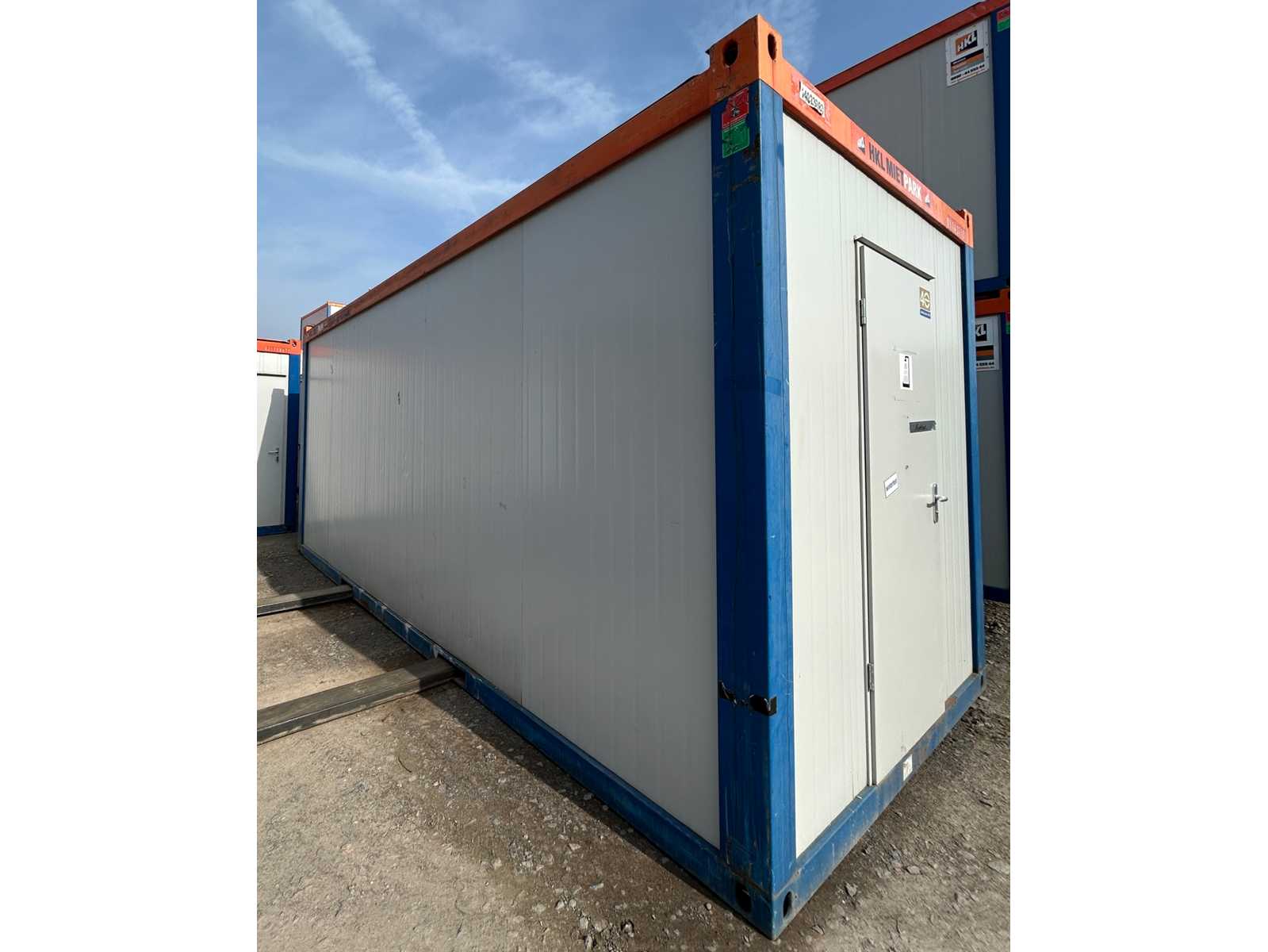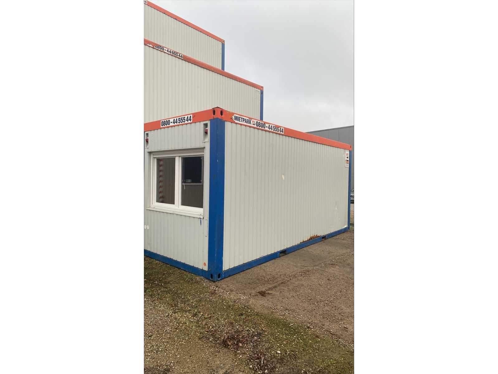 Specifications External dimensions: 6,058 x 4,976 x 2,800 mm Shipping: Non-shipping BDF System: Yes Tight-welded steel frame: Yes Frame: DIN-ISO Handling: Connectable, Stackable, Craneable Forklift pockets: 2055 mm Floor: PVC flooring Interior colour RAL: 9010 Exterior colour RAL: 9010 Security: Profile cylinder lock Electrical: Electrical installation, ceiling lights, switches & sockets, outdoor socket: CEE 32A 5P 400V, fuse box, RCD SWITCH according to VDE EnEV-compliant: No Ventilation: Forced ventilation Heating: Yes Material inner wall (cladding): PVC Doors: Without vestibule Number of doors: 1 Exterior door: steel Number of windows: 4 Sanitary facilities: No Auction-ID: A1-44751-31