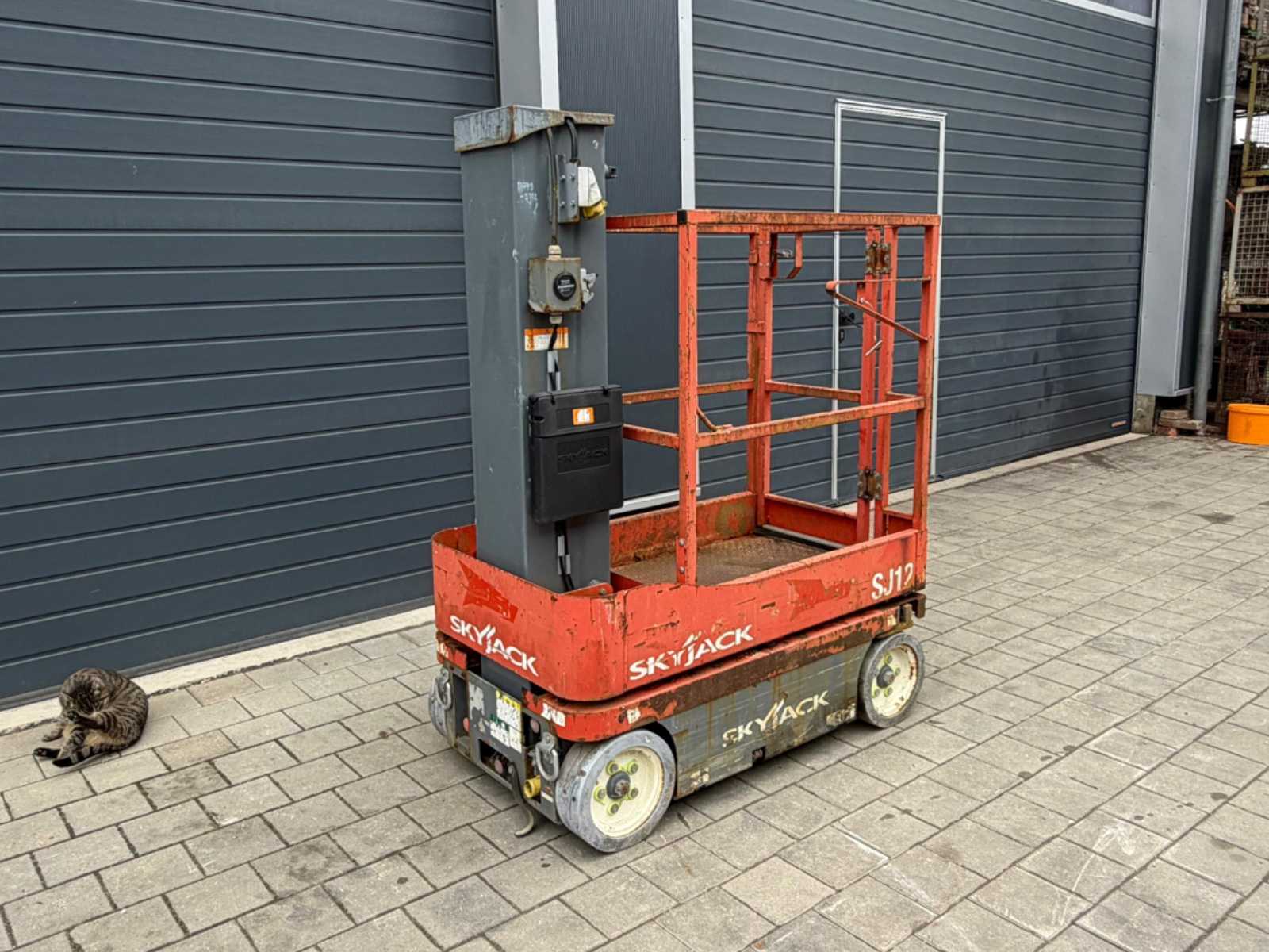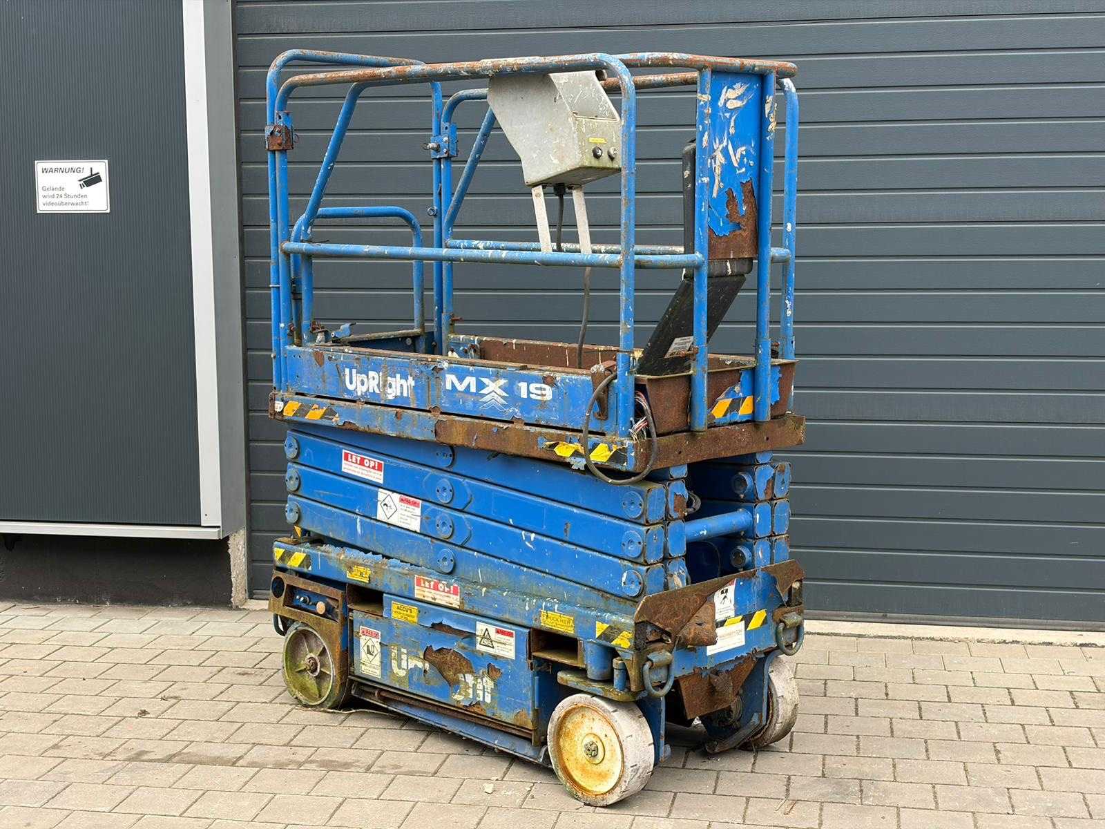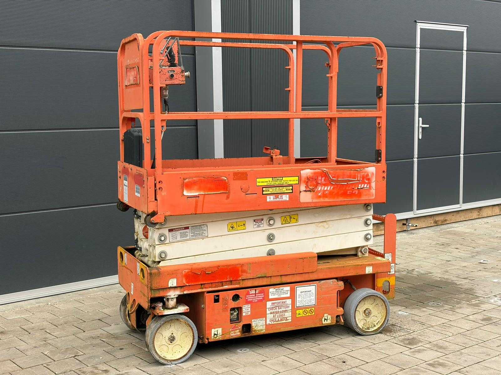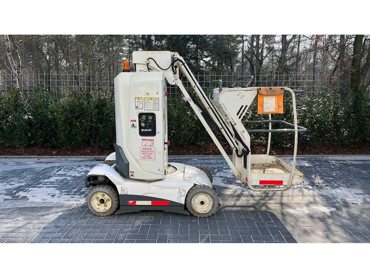 In working condition! Performs all functions. Very compact design +- 1000 mm wide Headroom +- 1990 mm Reach: 3 m (horizontal jib) +- 8.2 m working height +- 6.2 m platform height Suitable for indoor and outdoor work Non-marking tyres Auction-ID: A3-43497-21218
