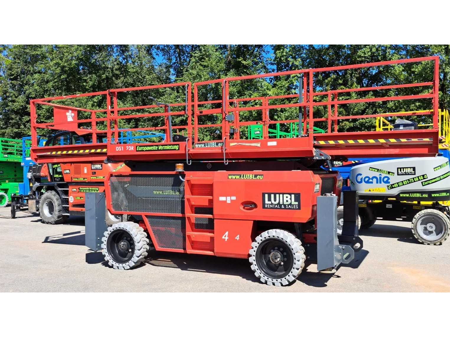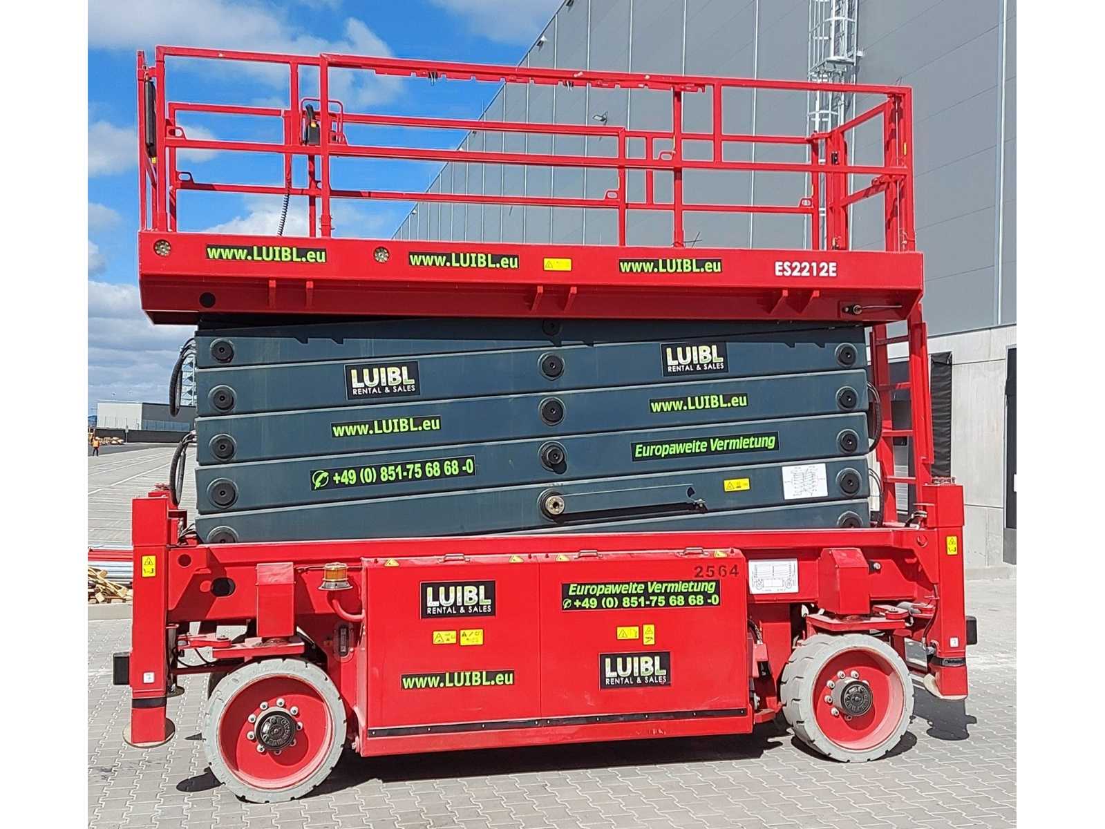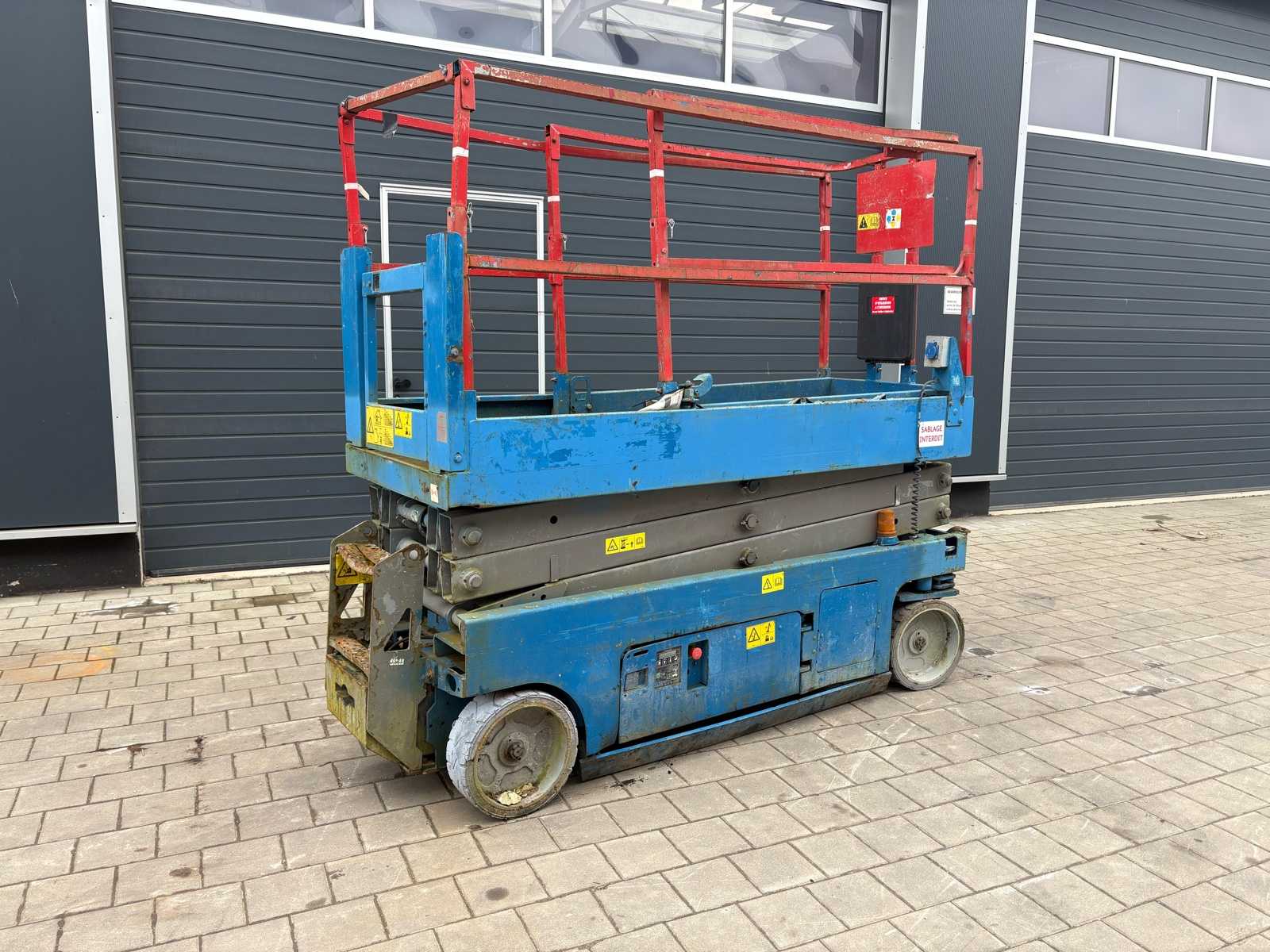 In working condition! Performs all functions. Very compact design +- 1000 mm wide Headroom +- 1990 mm Reach: 3 m (horizontal jib) +- 8.2 m working height +- 6.2 m platform height Suitable for indoor and outdoor work Non-marking tyres Auction-ID: A3-43497-21218