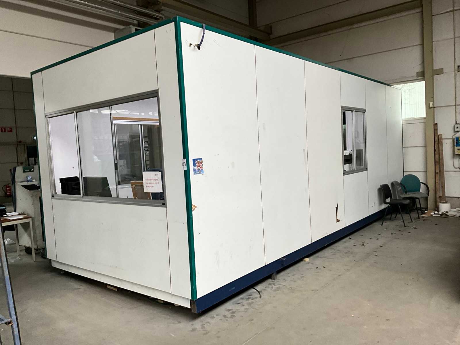 Equipped with lighting and electricity, 3 windows, 2 doors, with contents (various tables, chairs, and monitors) printers not included! Auction-ID: A1-44279-133