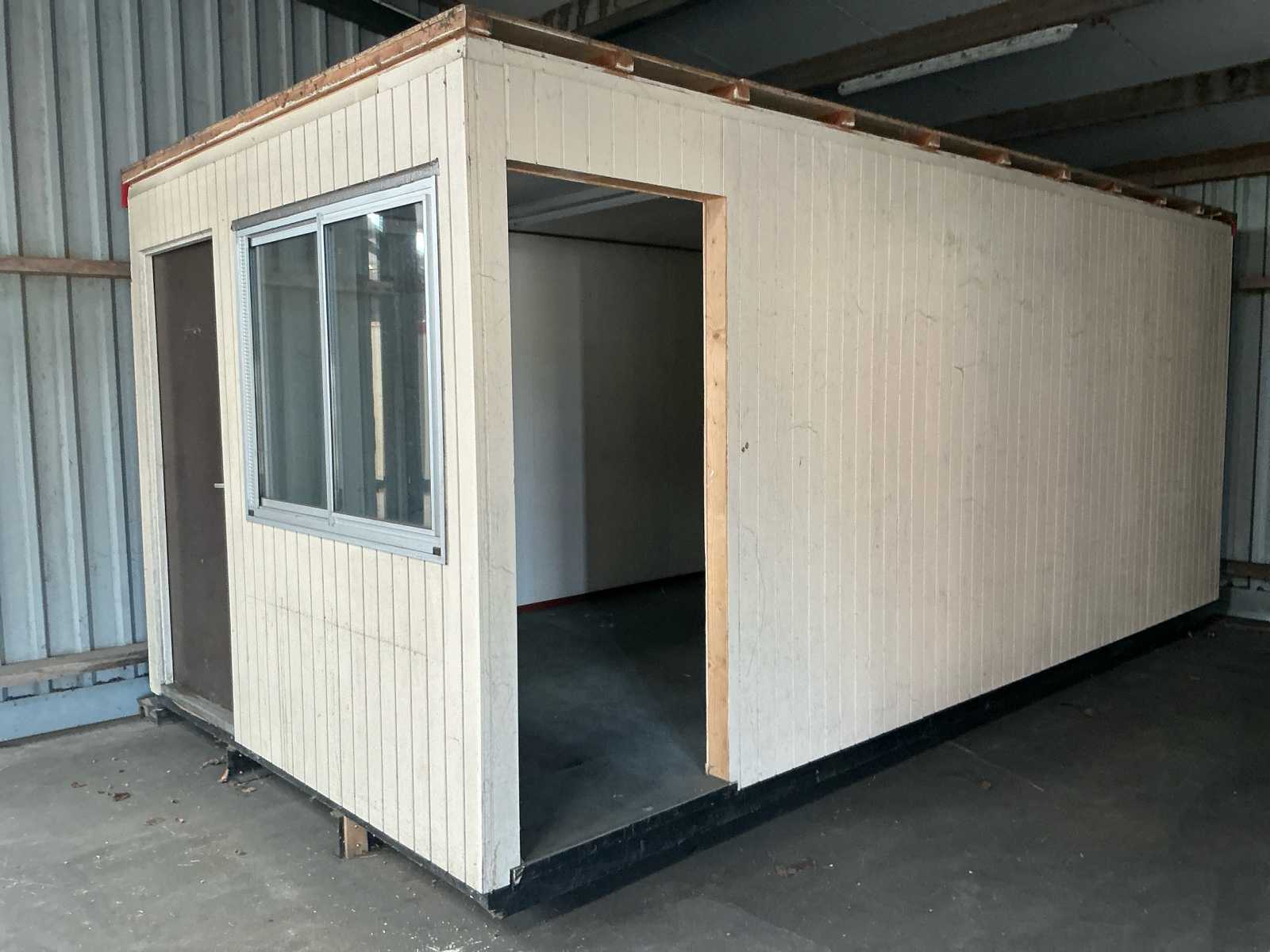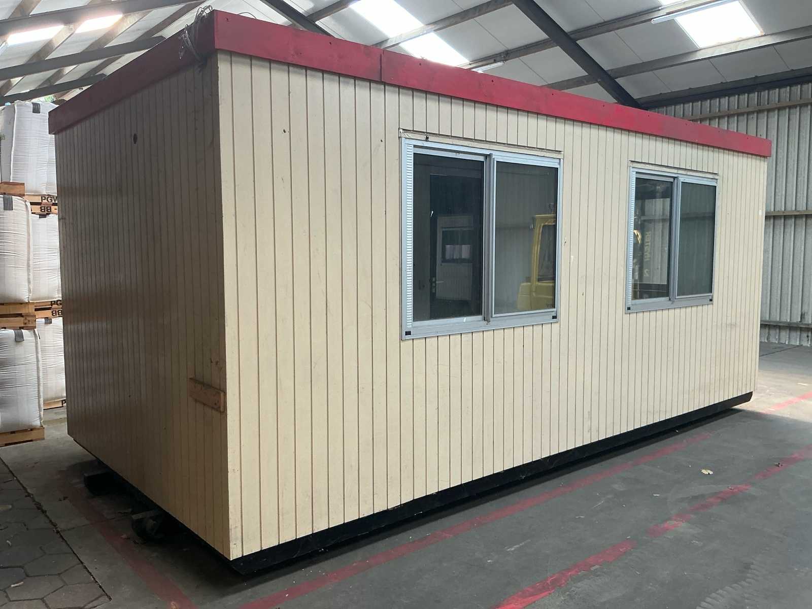 Equipped with: entrance door, double sliding windows, kitchen unit, electric heating, shelving, fuse box and sockets. Steel frame with adjustable legs and lifting eyes. Auction-ID: A1-40101-127