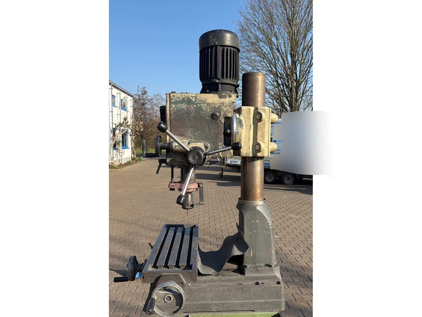 Column milling machine – industrial version General data • Machine type: Milling machine • Available: immediately • Condition: used ⸻ Technical equipment • Stable column construction • Cross table with longitudinal and transverse movement • Height-adjustable work table • Manual feed control via handwheels • Multi-stage speed adjustment • Milling spindle with tool holder • Coolant pump • Induction motor • Power: approx. 1.1 kW • Voltage: 400 V • 2 speed ranges (approx. 1,420 / 2,840 rpm) ⸻ Condition • Optical condition: used, signs of wear due to age and use • Technical condition: functional Robust workshop machine for milling and machining work in the metal sector. Auction-ID: 04G-DYB-1