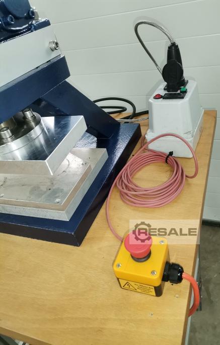 Prensa de Aquecimento de Laboratório EHSP20H – Máquina de Demonstração Usada Prensa de mesa / prensa de parafuso elétrica com pressão de pressão 20 KN (2 toneladas) Com dispositivo de aquecimento até 200 C de cima e de baixo. Acionamento de prensa com engrenagem de macaco de parafuso, relação de redução 1 : 12, diâmetro do eixo 32 mm, Passo 6 mm, área de compressão aprox. 100 150 mm, altura livre e curso aprox. 300 mm. Motor engrenado 0,37 KW, 1.390 rpm, 4 polos, com engrenagem de esporão i = 1 : 5, Velocidade 150 mm/min. Carga dinâmica máxima 20 kN. Com controle de marcha-atrás, caixa de controle e plugue de proteção do motor. Estrutura de prensa resistente feita de aço. Undertable feito de perfis de alumínio de alta qualidade 4545 mm, superfície da mesa 600600 mm, Tampo de mesa feito de placa multiplex. Peso total aprox. 100 kg. A prensa de  ...