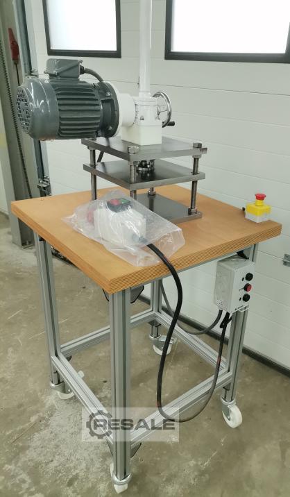 Pressão de eixo elétrico REITZ EHSP100F como prensa de aquecimento de laboratório / máquina de demonstração Prensa de aquecimento laboratorial com pressão de pressão 40 KN (4 toneladas), relação 1 : 16, diâmetro do fuso 45 mm, altura 8 mm, fuso 0,5 mm por revolução. Motor de engrenagem 0.75 KW, 1.500 rpm, 4-pole, com engrenagem de impulso i = 1:5, Velocidade 150 mm / min. Carga dinâmica max 25 kN. Com o controlo de viragem e a paragem de emergência. Peso total aprox. 100 kg, superfície de mesa 600 600 mm, superfície prensada aprox. 150 250 mm, altura clara aprox. Base feita de perfis de alumínio de alta qualidade 4545 mm, o topo da mesa é feito de contraplacado colado. A prensa de aquecimento laboratorial tem 40 kN de pressão de pressão (carga dinâmica). O eixo está a bloquear-se por si próprio e, assim, mantém a força de pressão por um p ...