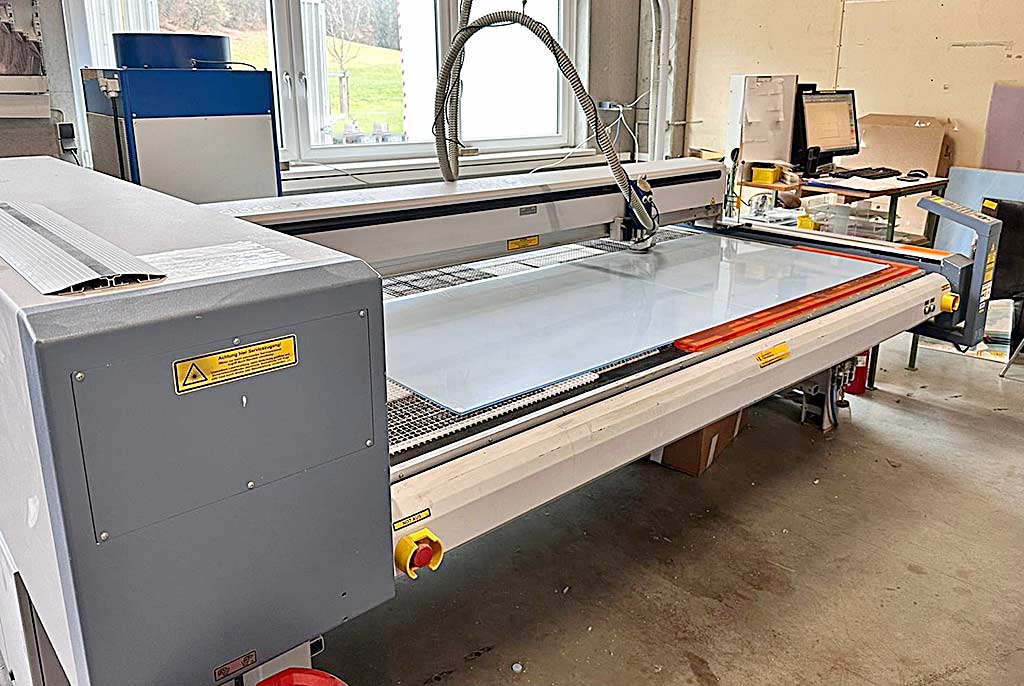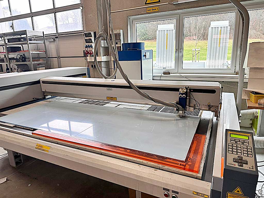 A CO2 laser cutting and marking machine Eurolaser, which was used for acrylic glass, is available. Laser power: 200W, working dimensions X/Y: 2270mm/1600mm, max. cutting width: 2200mm, material feed width: 2350mm, table feed-through height range: 58mm-80mm, engraving resolution: 1200dpi, grayscale levels: 256, material processing: films/textiles/plastics/composite materials/paper/thin wood. Machine dimensions X/Y/Z: approx. 4000mm/2350mm/1600mm, weight: approx. 2000kg. The laser source was renewed in 2021. Documentation available. An on-site inspection is possible.