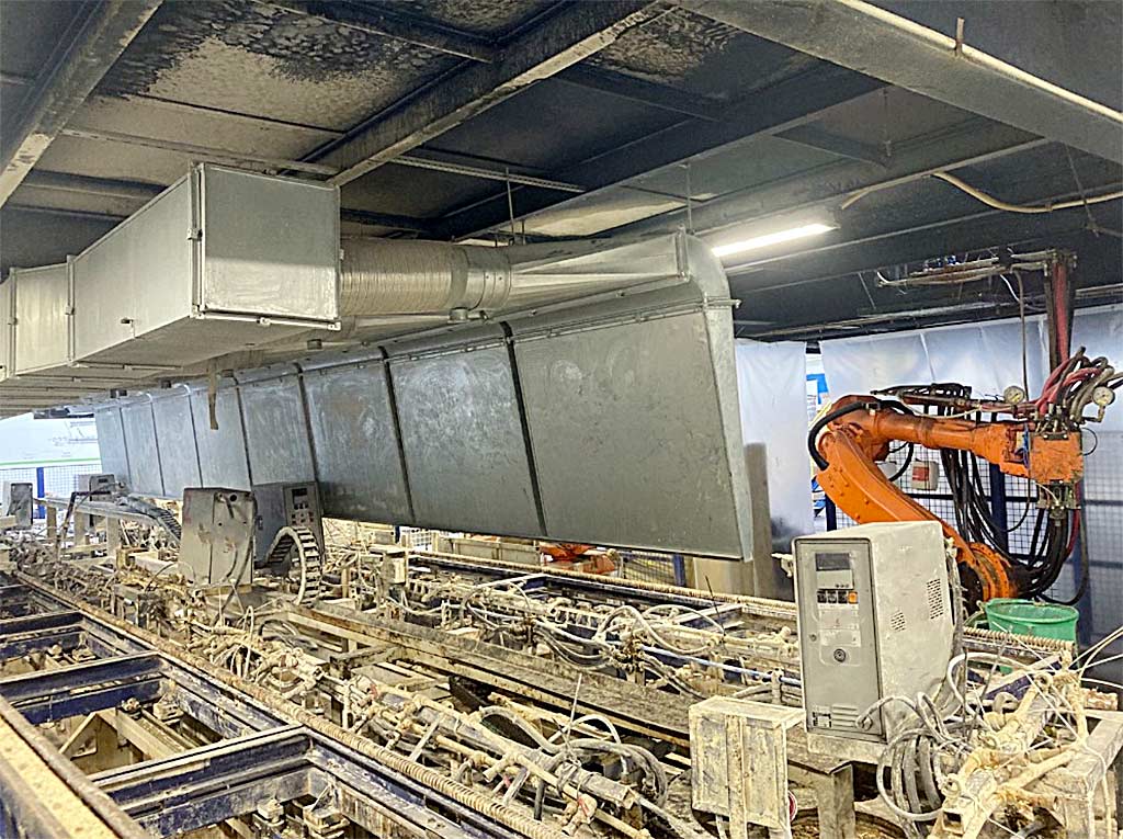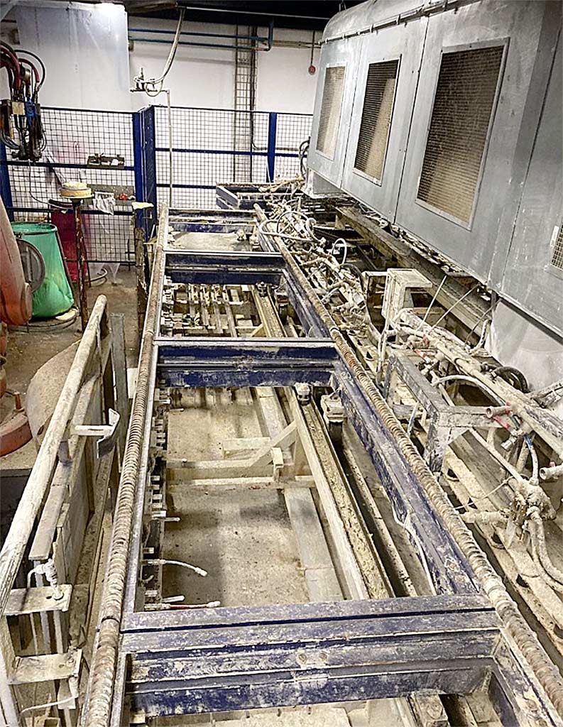 A Hennecke HK135 high-pressure polyurethane foaming system with four 25000l mixing tanks, a casting robot and two release agent robots is available. Capacity: 225t/24h, tool carriers: 42, mixing positions for additive mixing: 10, mixhead type: MQ, max. working pressure: 180bar, pressure tank: 330bar. Foam types: Rigid foam, rigid integral foam, semi-rigid integral foam, semi-rigid filling foam, cold-curing flexible foam, hot-curing flexible foam. Multiple mold foaming is possible. Complete documentation available. On-site inspection is possible.
