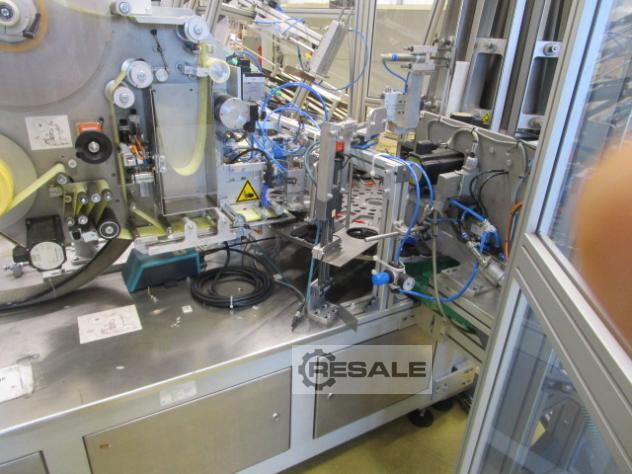 Consiste em: -Destacker -Dispensador de etiquetas para pavimento -Dispensadores de etiquetas laterais 1 + 2 e 3 + 4 -Estação para acabamento das etiquetas laterais (sistema de engomar) -Estação de controle com monitoramento de câmera -Empilhador com contador -Transportador de descarga para o produto acabado