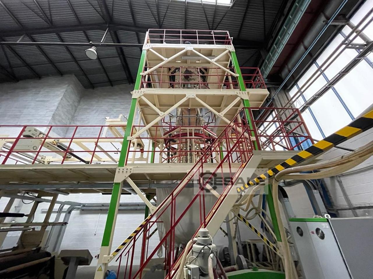 As principais máquinas da linha: misturador de fluidos Trusioma quente e frio ÔNIBUS KO-KNEADER Moinho de mistura Buzuluk 660x2100 mm Calandra de 4 rolos Buzuluk 700x1800 mm, invertida "L" Dispositivo de têmpera e estiramento atrás do calandra – pista de rolos Dispositivo de medição do perfil de espessura da película dispositivo de enrolamento