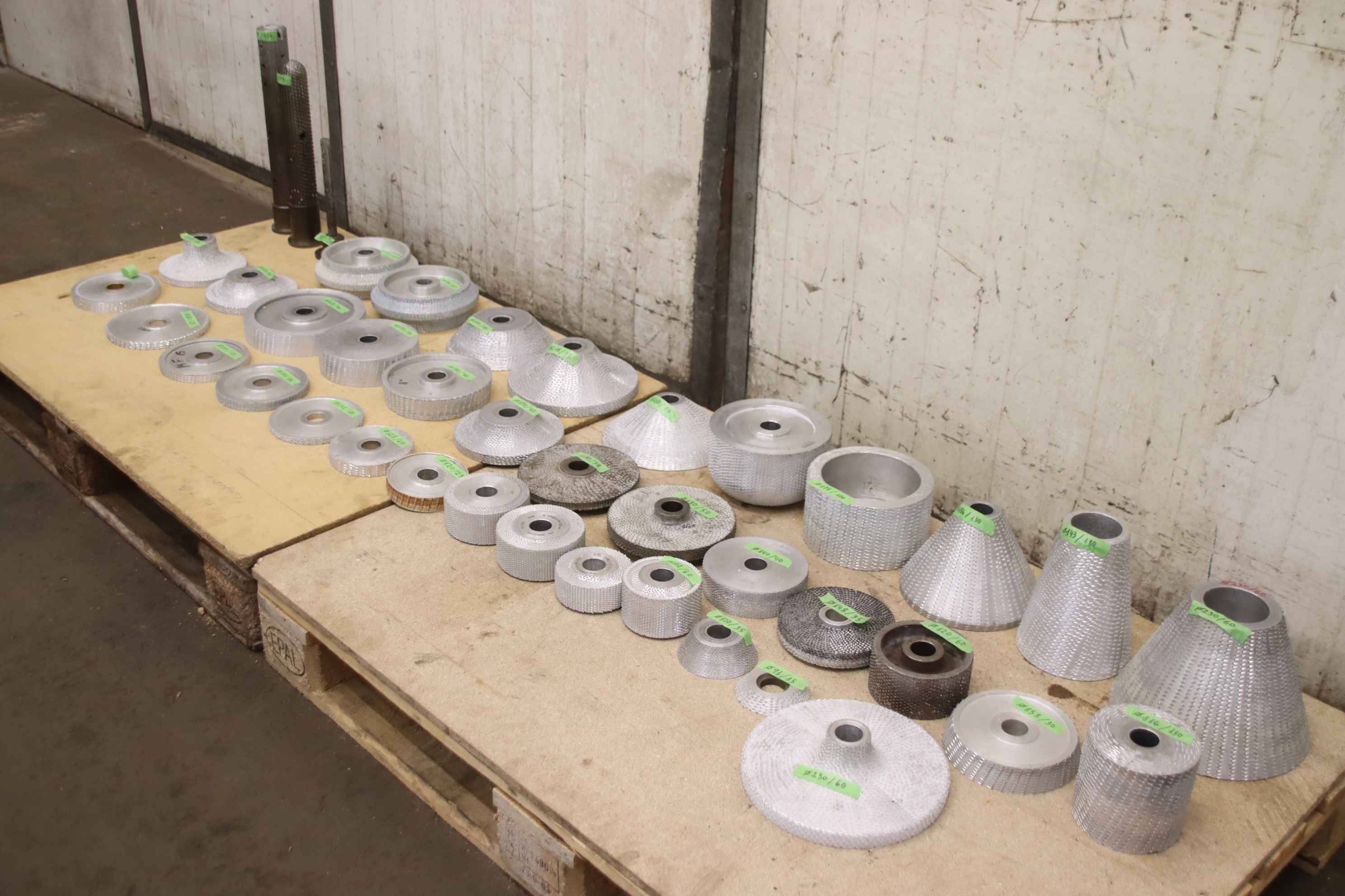 Rasp cutters, plastic cutters, mold making cutters, Styrodur cutters, Styrofoam cutters-Rasp cutters 40 pieces-Hole: Ø 30 mm-Type/Sizes: see photos-Transport dimensions: 800/600/H420 mm-Total weight: 89.4 kg