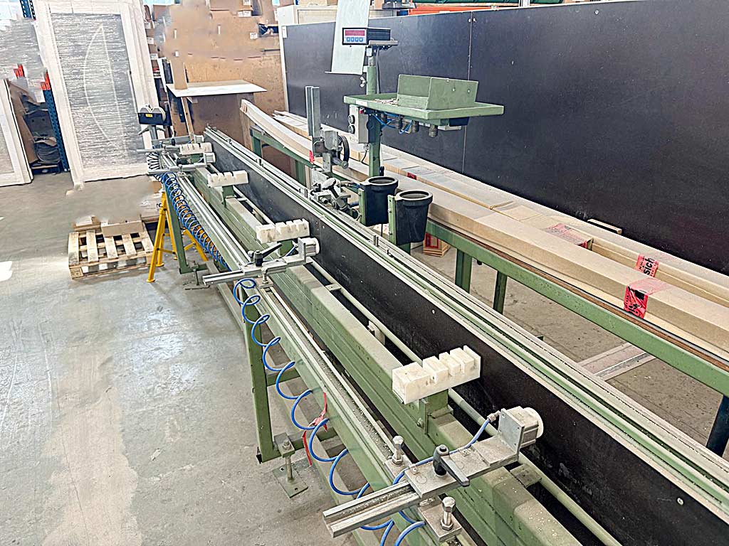 A T-connector assembly fixture Ruchser for precise and time-saving installation of T-connectors in window or door profiles is available. Usable length: 6000mm, max. mullion width: 250mm, profile supports: 6, clamps: 4, positioning stops: 4, working height range: 950mm-1100mm, machine dimensions X/Y/Z: approx. 6450mm/1200mm/1750mm. Documentation available. An on-site inspection is possible.