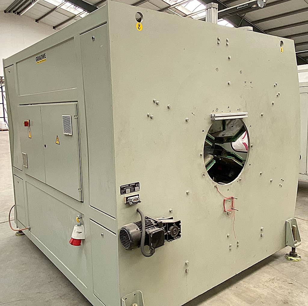 A fully pneumatic Polzer glazing press is available. Clamping height: 2300mm, total press height: 2600mm, roller conveyor width: 170mm, roller conveyor height: 250mm, total depth: 1000mm, clamping width: 3500mm, total width: 4500mm. Documentation available. On-site inspection is possible.