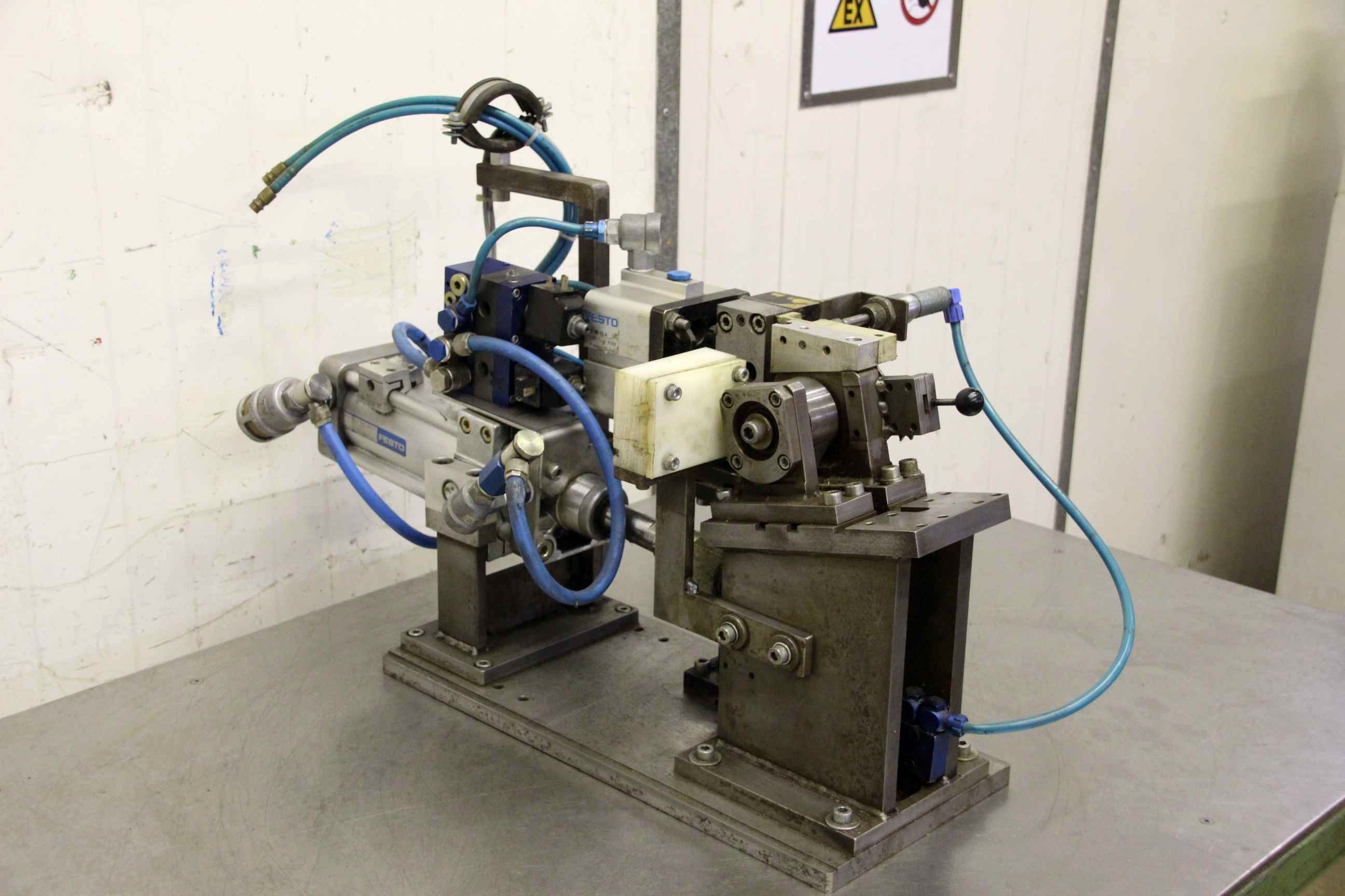 Window rubber, cutting machine, gasket cutter, pneumatic lamellar cutter, blind cutting device-Lamellar cutter: for PVC and aluminum blinds, pneumatic-Manufacturer of pneumatic components: Festo-Dimensions: 680/340/H470 mm-Weight: 55 kg