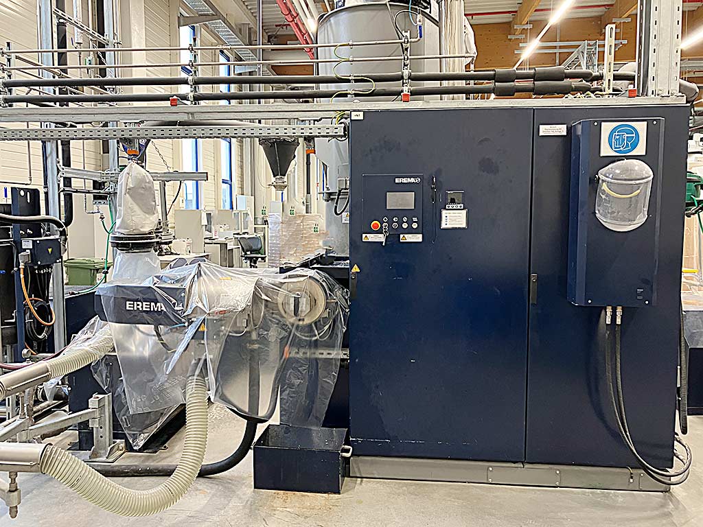 A high-temperature rolling machine for glass fiber reinforced compounds is available. 1) Large roller Comerio Ercole, year of construction: 1970, working width: 1500mm, roller diameter: 600mm, roller gap: electrically adjustable, lubrication: circulating oil lubrication. 2) Small roller Meccaniche Moderne, year of construction: 1966, working width: 800mm, roller diameter: 400mm, lubrication: circulating oil lubrication. 3) Horizontal mixer, volume: 2.5m³. 4) Big bag frame with crane. 5) 2x gravimetric dosing scales with control. 6) Conveyor belts and spiral balancing conveyor. 7) Condux HM 45/60 LA hammer mill (lined) with a 1000 mm vibrating screen. 8) 2x Lauda heaters. Including cement mixer, bucket elevator, silo, bagging scales, glass feed rack and a control cabinet for overall plant control. Documentation available. On-site inspection is possible.