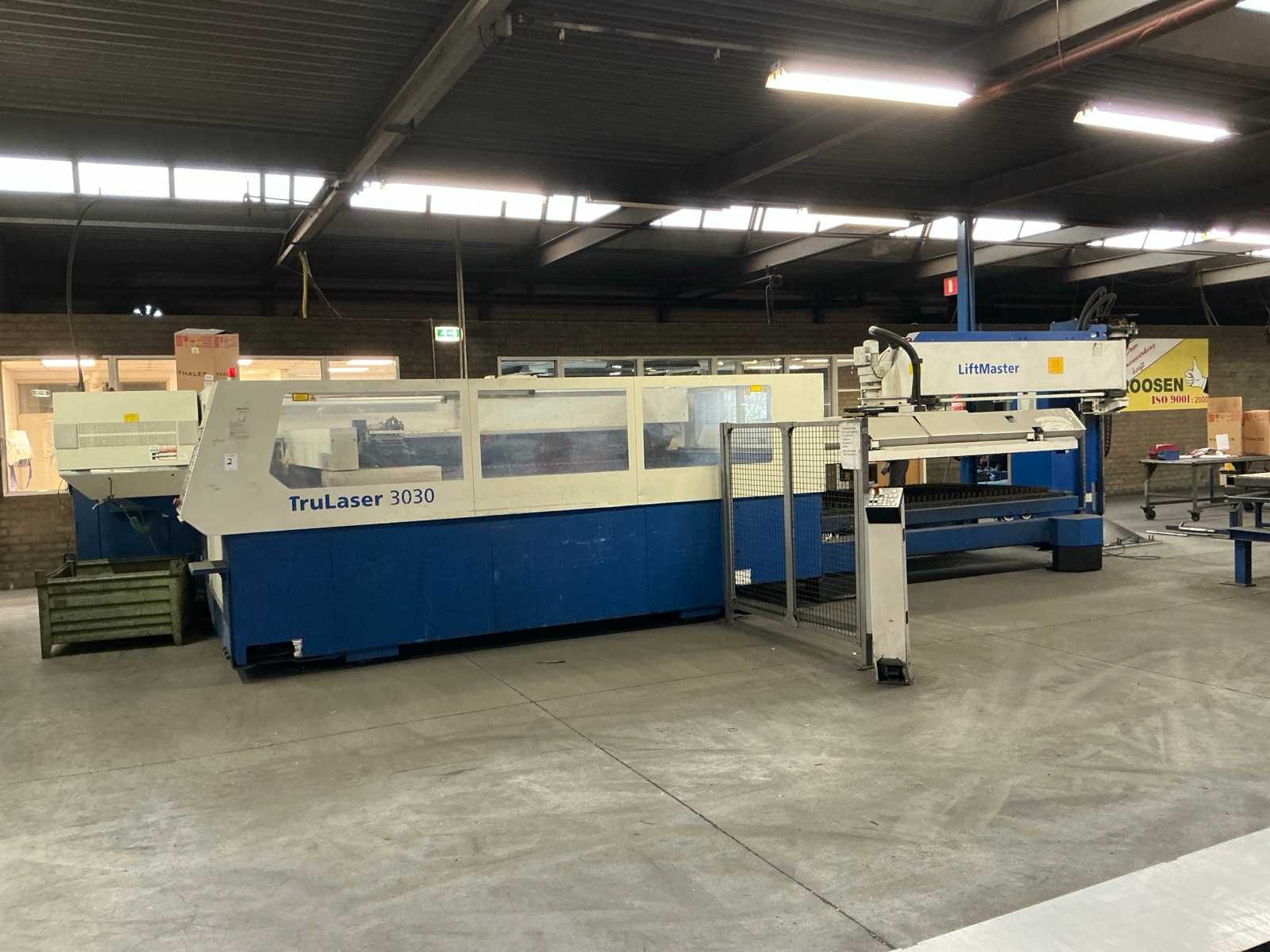 Laser module Truflow 4000; connected load 88 kVA; maximum thickness steel 20 mm, maximum thickness stainless steel 15 mm, maximum thickness aluminum 20 mm, positioning 0.1 mm; Riedel cooling unit; Trumpf Liftmaster plate handler; equipped with 2x electrically driven plate trolley capacity 5000 kg; for supply and removal; hours increasing. Auction-ID: A1-41989-5