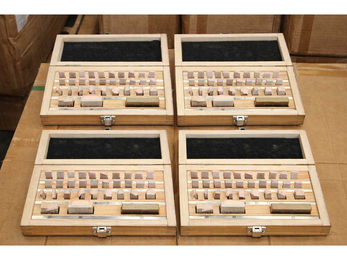 4 UNITS/SETS OF SDM0066 PACKED TOGETHER. A SINGLE SDM0066 CORRESPONDS TO: Set composed of 32 steel gauge blocks, sizes from 1.005 mm up to 50 mm. Operating reference temperature 20°C. Standard used DIN861. With wooden box included. Machine condition: unchecked. Approx. Transport dimension: LxWxH 220 x 130 x 70 mm; Approx. Weight: 2kg The item for sale may not be the one shown in pictures, but will have equal specifications and performance. TOTAL APPROX. DIMENSIONS OF THE LOT WITH 4x SDM0066 PACKED TOGETHER: 220 x 520 x h70 mm - 8 kg. PACKAGING WILL BE PERFORMED DEPENDING ON WEIGHT AND DIMENSION. Auction-ID: A7-43155-72