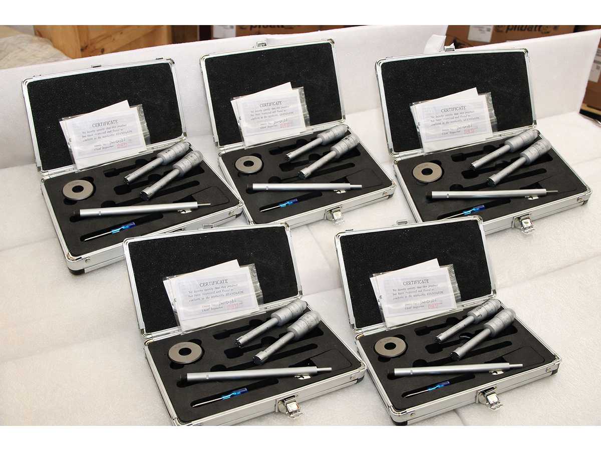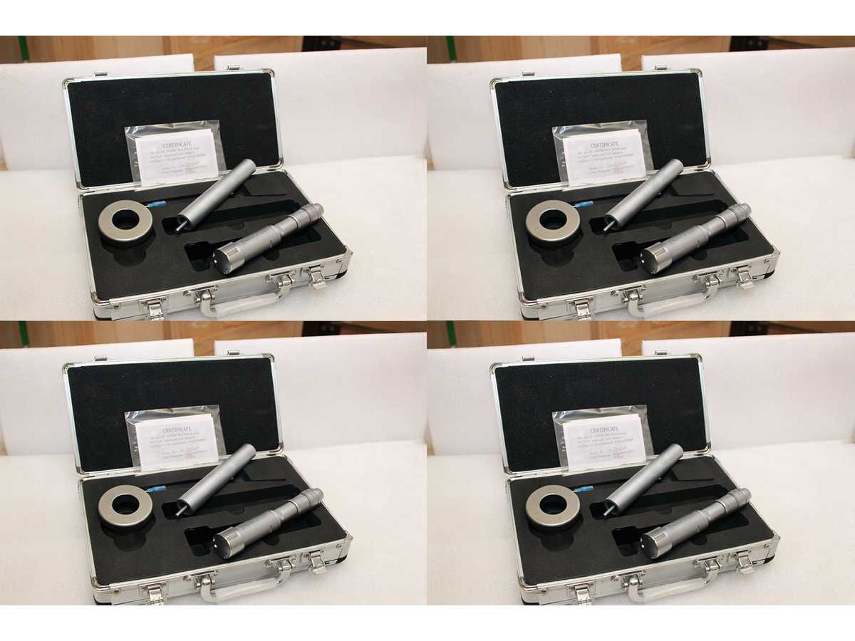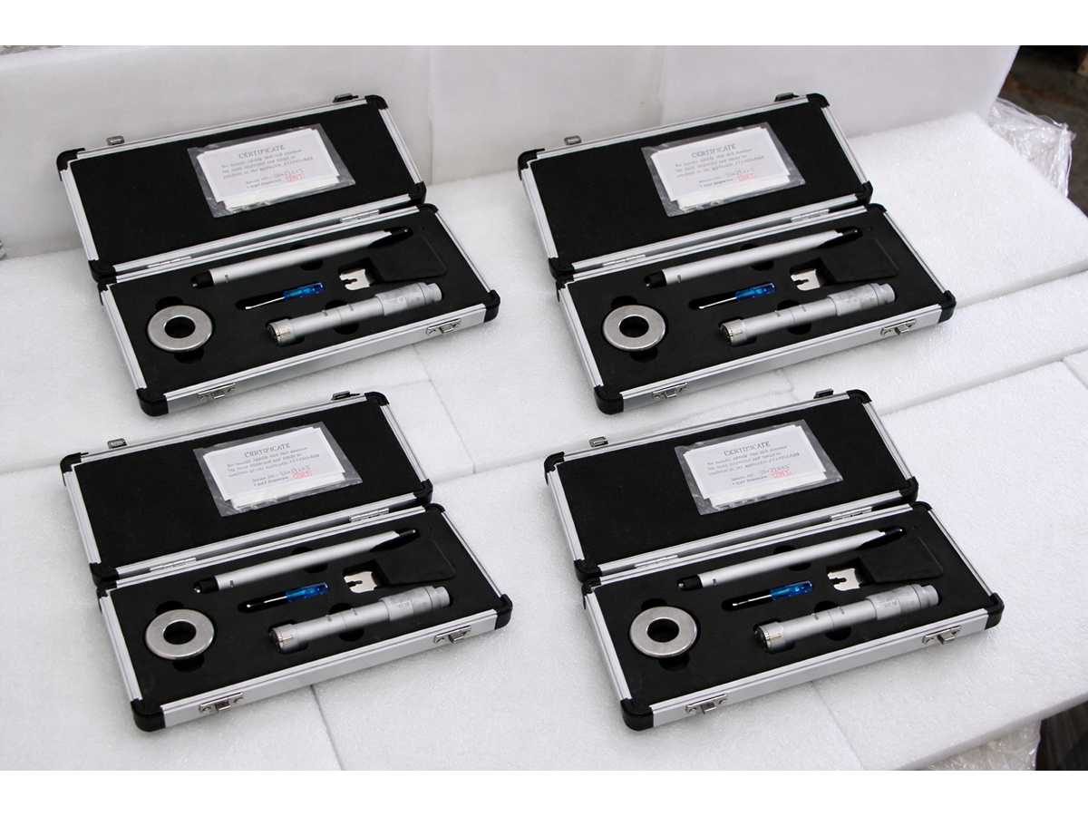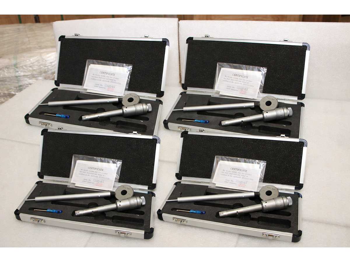 4 UNITS/SETS OF SDM0059 PACKED TOGETHER. A SINGLE SDM0059 CORRESPONDS TO: Three-point micrometer for internal measurements from 16 to 20 mm. Diameter 10.8 mm, depth up to 74 mm, height of measuring tips 6.3 mm. 16 mm calibration ring included. Accuracy 4 um, resolution 0.005 mm. Certificate included Machine condition: unchecked. Approx. Transport dimension: LxWxH 260 x 130 x 40 mm; Approx. Weight: 2kg The item for sale may not be the one shown in pictures, but will have equal specifications and performance. TOTAL APPROX. DIMENSIONS OF THE LOT WITH 4x SDM0059 PACKED TOGETHER: 260 x 520 x h40 mm - 8 kg. PACKAGING WILL BE PERFORMED DEPENDING ON WEIGHT AND DIMENSION. Auction-ID: A7-43155-77