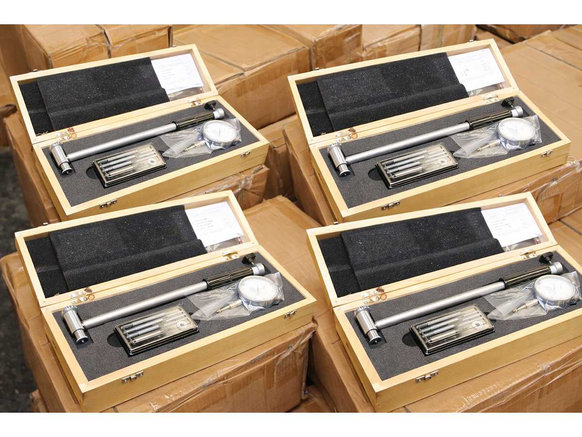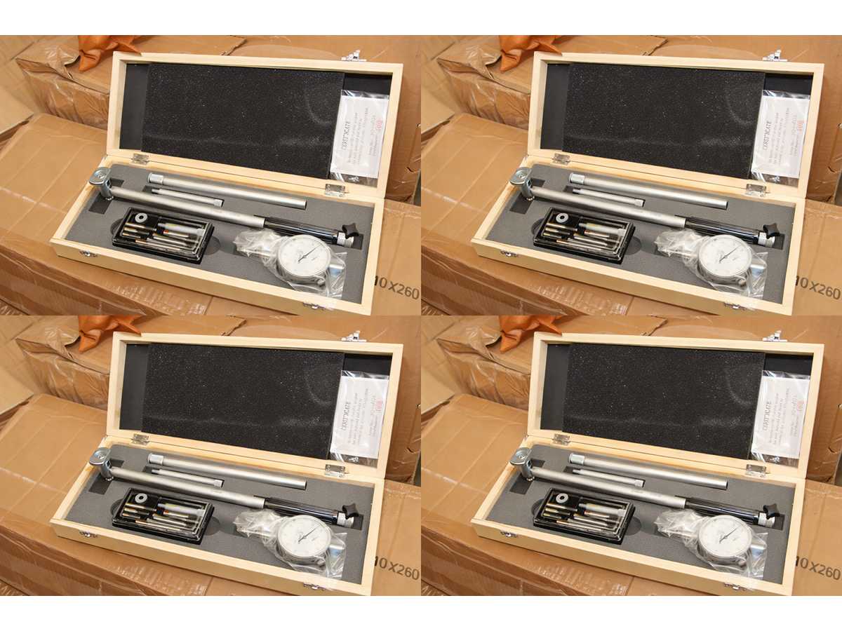 4 UNITS/SETS OF SDM0068 PACKED TOGETHER. A SINGLE SDM0068 CORRESPONDS TO: Measuring range: 50 - 160 mm Measuring resolution: 0.01 mm Depth 200 mm Bore gauge complete with indicator, extensions and anvil. Machine condition: unchecked. Approx. Transport dimension: LxWxH 370 x 145 x 65 mm; Approx. Weight: 2kg The item for sale may not be the one shown in pictures, but will have equal specifications and performance. TOTAL APPROX. DIMENSIONS OF THE LOT WITH 4x SDM0068 PACKED TOGETHER: 370 x 580 x h65 mm - 8 kg. PACKAGING WILL BE PERFORMED DEPENDING ON WEIGHT AND DIMENSION. Auction-ID: A7-43155-115