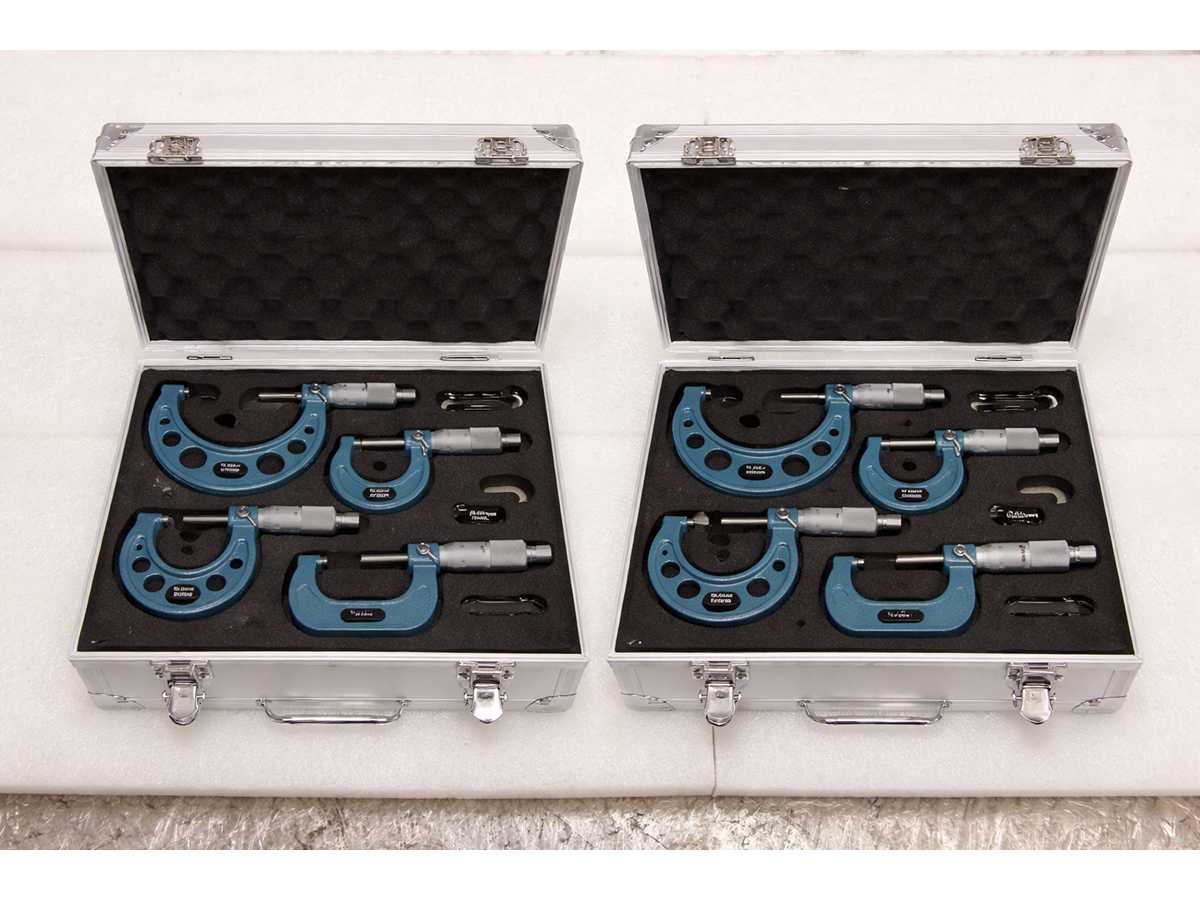 2 UNITS/SETS OF SDM0054 PACKED TOGETHER. A SINGLE SDM0054 CORRESPONDS TO: Set composed of 4 centesimal micrometers for measurements from 0 to 100 mm. Measurements: 0-25mm; 25-50mm; 50-75mm; 75-100mm. Certificate included Machine condition: unchecked. Approx. Transport dimension: LxWxH 280 x 120 x 130 mm; Approx. Weight: 3kg The item for sale may not be the one shown in pictures, but will have equal specifications and performance. TOTAL APPROX. DIMENSIONS OF THE LOT WITH 2x SDM0054 PACKED TOGETHER: 280 x 240 x h130 mm - 6 kg. PACKAGING WILL BE PERFORMED DEPENDING ON WEIGHT AND DIMENSION. Auction-ID: A7-43155-48
