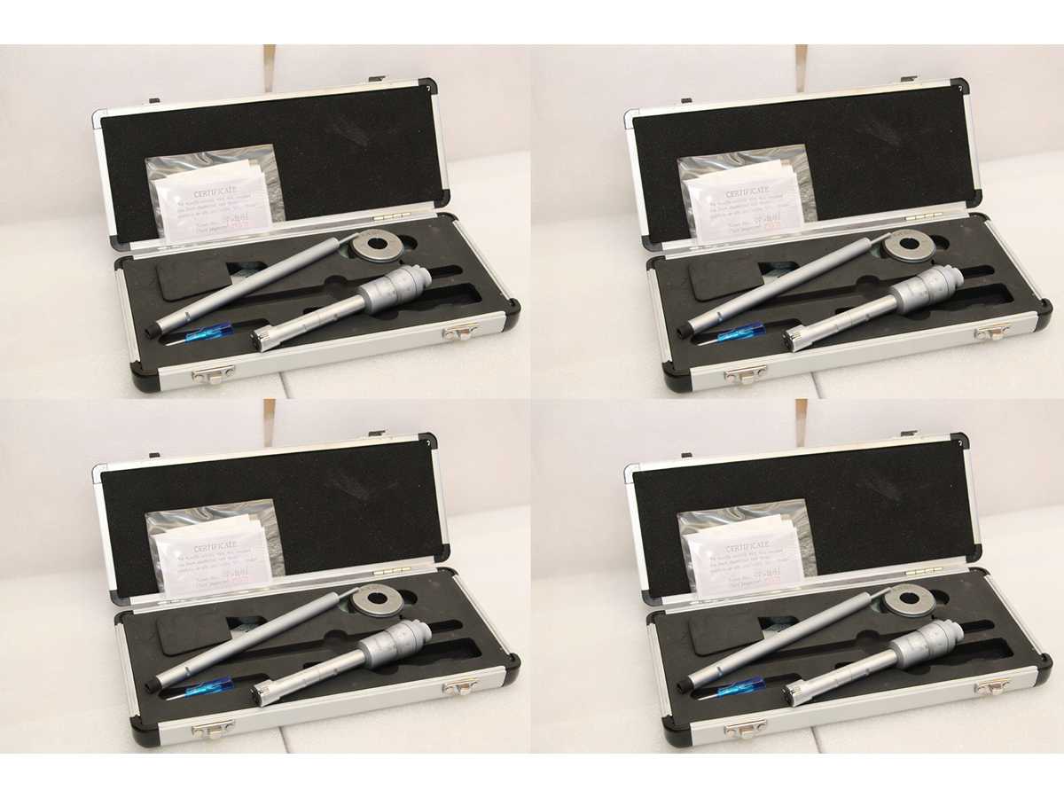4 UNITS/SETS OF SDM0060 PACKED TOGETHER. A SINGLE SDM0060 CORRESPONDS TO: Three-point micrometer for internal measurements from 20 to 25 mm. Diameter 17 mm, depth up to 85 mm, height of measuring tips 8.8 mm. 20 mm calibration ring included. Accuracy 4 um, resolution 0.005 mm. Certificate included Machine condition: unchecked. Approx. Transport dimension: LxWxH 265 x 130 x 40 mm; Approx. Weight: 2kg The item for sale may not be the one shown in pictures, but will have equal specifications and performance. TOTAL APPROX. DIMENSIONS OF THE LOT WITH 4x SDM0060 PACKED TOGETHER: 265 x 520 x h40 mm - 8 kg. PACKAGING WILL BE PERFORMED DEPENDING ON WEIGHT AND DIMENSION. Auction-ID: A7-43155-92