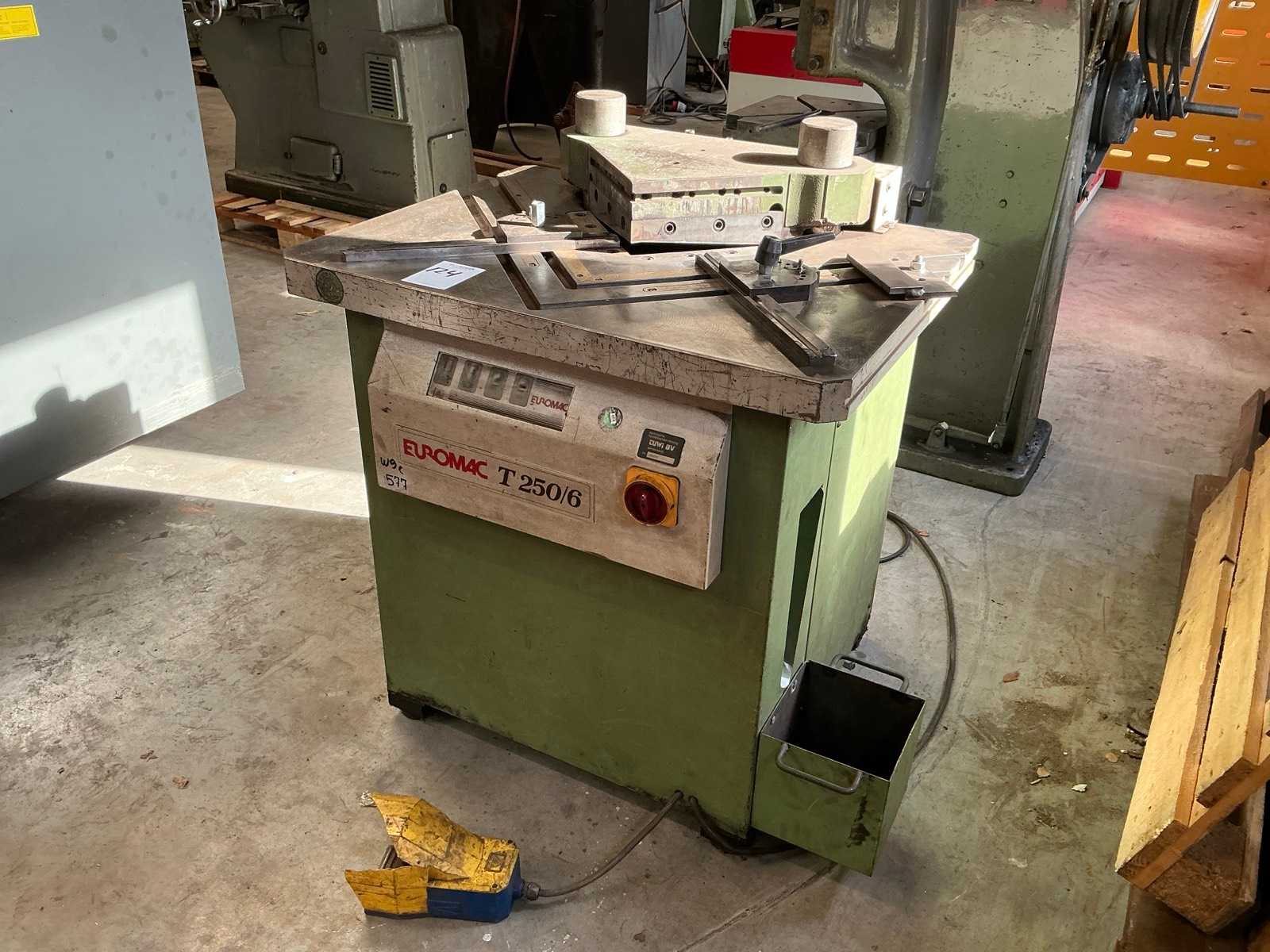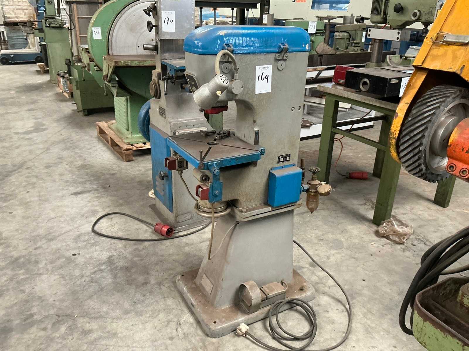 pressure:125 tstroke:25 fix mmno. of strokes:70 - 700 /mindistance between columns:1150 mmdistance table/ram, max. stroke up, adjustment up:400 mmtable surface area:1150 x 1000 mmhole in the table:900 x 220 mmside window:650 mmram surface:990 x 850 mmram adjustment:60 mmmaterial width:250 mmmaterial thickness:2,5 mmpower requirement:46,5 kWweight:29,5 troll feed:mechanical, Schuler, WK 8-250