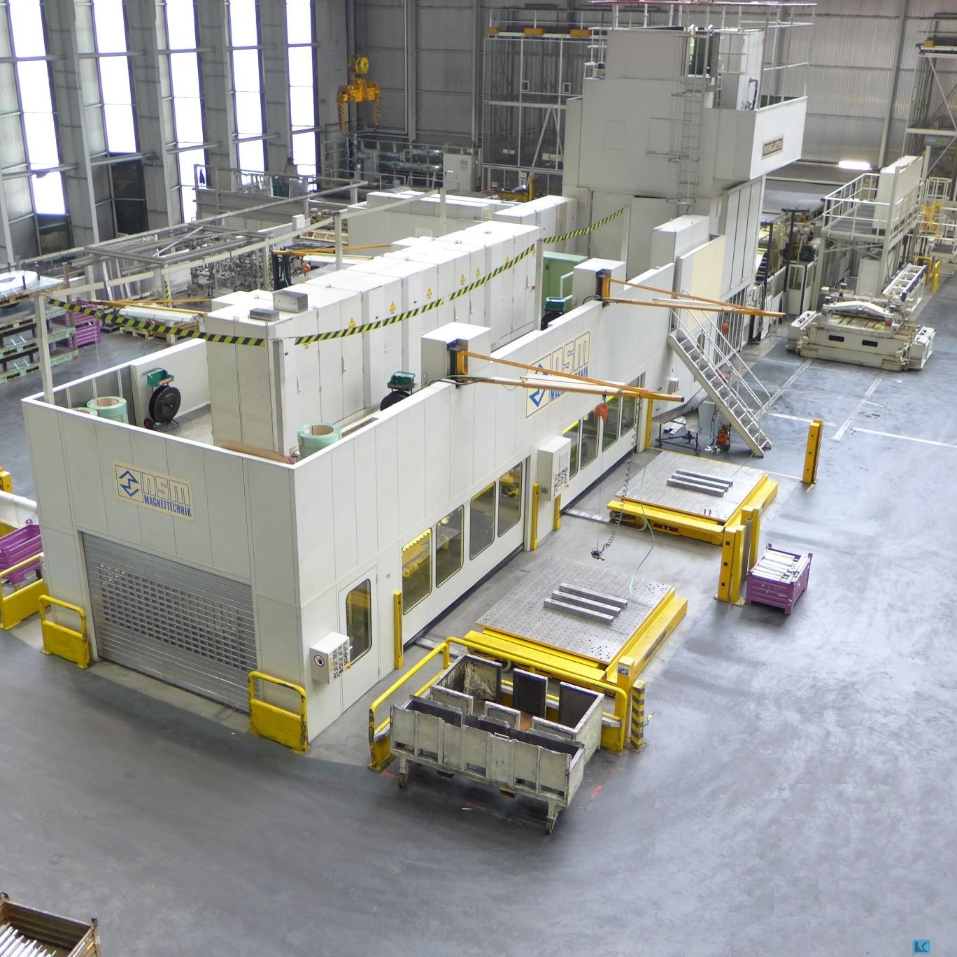 sheet width:2000 mmplate thickness:1.8 mmControls:SIEMENS S7 PRESS DESIGN:. - frame design : H-frame :. - openings in uprights : yes :. - opening in table : yes :. - moving bolster : yes :. PRESS TABLE:. - clamping surface (left-right):2800 mm - clamping surface (front-back):2800 mm - height above floor level:375 mmRAM:. - ram force:800 to - clamping surface (left-right):2800 mm - clamping surface (front-back):2800 mm - stroke:350 mm - number of strokes max:55 /minRAM (MECHAN. PRESS):. - ram adjustment:350 mmTOOL ASSEMBLY DIMENSIONS:. - shut height (stroke down, adjustment up):1100 mm - distance between columns (H-frame):3100 mm - Free passage between side columns (width):2560 mm - Free passage between side columns (height):1500 mmDECOILER:. - design : single coil :. - sheet width max:2000 mm - sheet width (min):400 mm - max. weight of coil:30 to - max. di ...