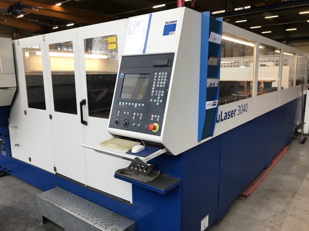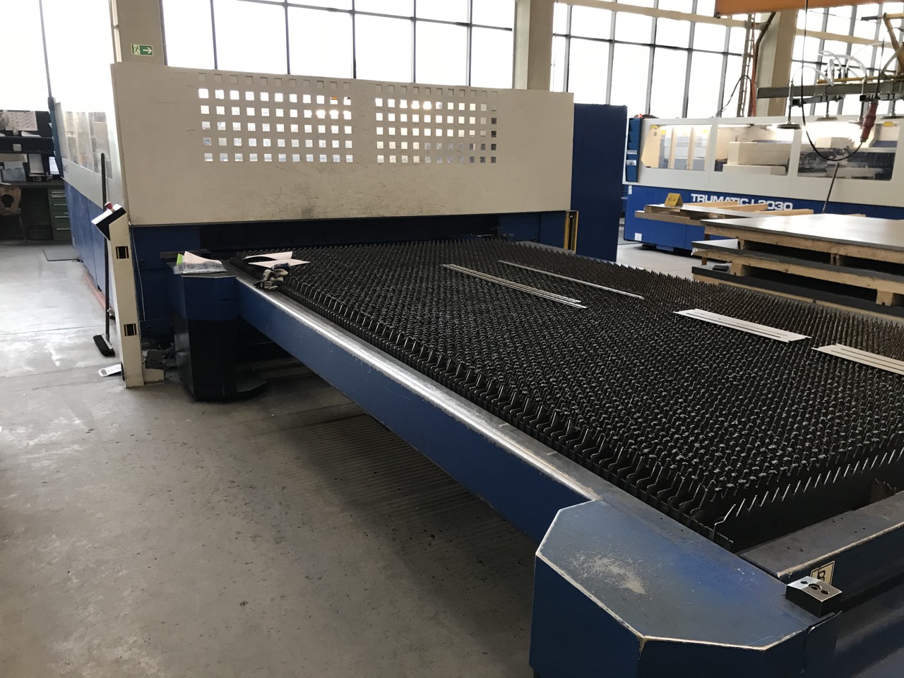 Working hours machine: 23304 h Working hours laser on: 22804 h Working hours beam on: 10185 h Laser power: 4400 Watt Working range laser: 3000 x 1500 mm Max. steel: 25 mm Max. stainless steel: 20 mm Max. aluminium: 12 mm Length: 12800 mm Width: 6300 mm Height: 2400 mm Machine weight: 15000 kg Electrical connected load: 51 kVA