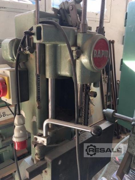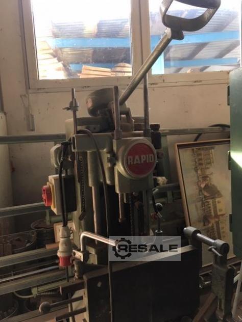 Producent: Rapid, Typ: Kettenstemmer, Rok: ca.1980, Min.-max. Wysokość obrabianego elementu w mm: 200-1200, Agregat do formowania pionowego: 1, Silnik kW: ca.1,0, Przesuw od góry do dołu mm: 150, Przesuw wzdłużny mm: ok. 300, Maksymalna szerokość drzwi mm: 1200, Max. wymiary otworu wpuszczanego L X W X D mm: 150 X ca.300, Wrzeciona wiertarskie: 1, Agregat płyty czołowej: nie, Agregat do wiercenia otworów na klucz: nie, Rok :ca.1980