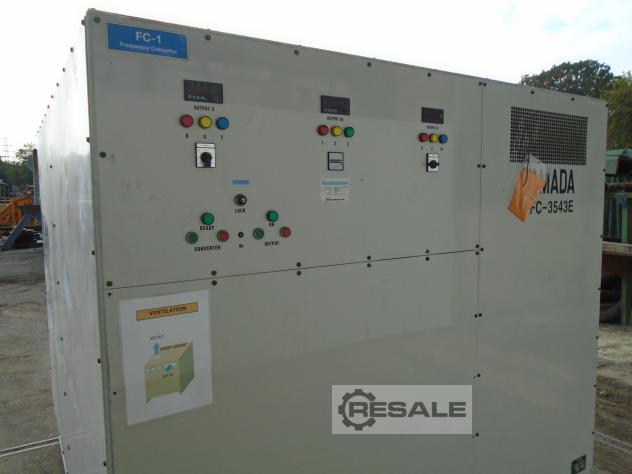 A rotating frequency generator generates 60Hz alternating current from 50Hz alternating current. In good condition. The device can be converted into a diesel generator. Manufacturer: YAMADA DENKI CO LTD Type: RFC-3543E; Series: 80155 Power: 350 kVA Input: 415 V; 50 Hertz Output: 415/215 V; 60 Hertz Operating hours: 3624 h Electric motor: AM-355 W; 350 kW; 415 volts; 546A; 50 hertz; 1500 rpm Synchronous generator: M3834; 400 kVA; 415/210 volts; 60 hertz; 1400 rpm