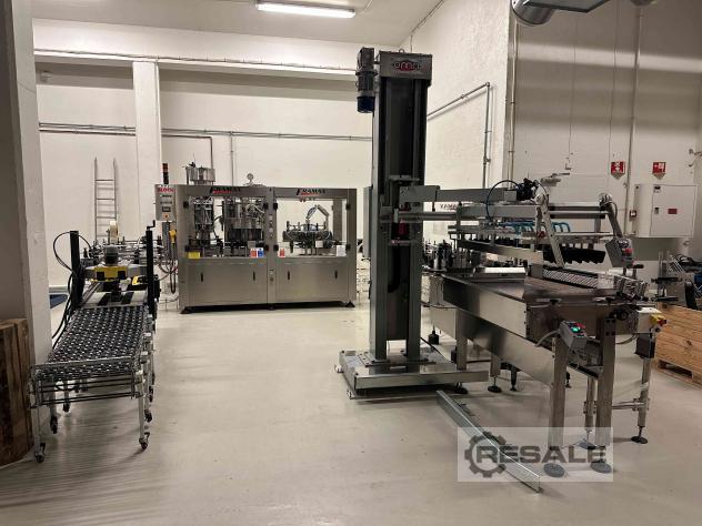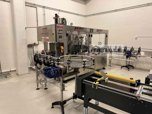 Beer bottling line, Framax 9-8-1 filler, pressure filler, double pre-evacuation, module block RFCI 09-08-1 DPS-C, year of manufacture: 2015, set up on 330 ml + 500 ml bottles, with depalletizer, labeling machine, self-adhesive labels, bottle transport, case sealer. Beer Bottling line, Made by: Framax 9-8-1 Filler, Counter pressure filler, isobaric, double pre-evacuation, Modulblock RFCI 09-08-1 DPS-C, Year: 2015, adjusted to 330 ml + 500 ml 0,33 + 0,50 glass bottles, with Depalletiser, Labeller Labelling machine, self adhesive labels, Bottle conveyors, carton sealer.