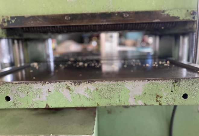 Trainer Rex Piallatrice di superficie Tipo A 510/3 Macchina n. 18.752 Anno di costruzione 1980 Larghezza di lavoro 510 mm 2 alberi dei coltelli Labbra da tavolo a fessura Asportazione di truciolo 6,5 mm Lunghezza tavola 1550 mm + 1180 mm Lunghezza battuta 1000 mm, altezza 140 mm Arresto girevole Velocità albero lama 5500 giri/min. Potenza motore 4,0 kW Diametro attacco di aspirazione 140 mm Peso con pallet 635 kg Dimensioni 2800 mm x 950 mm x H 1000 mm