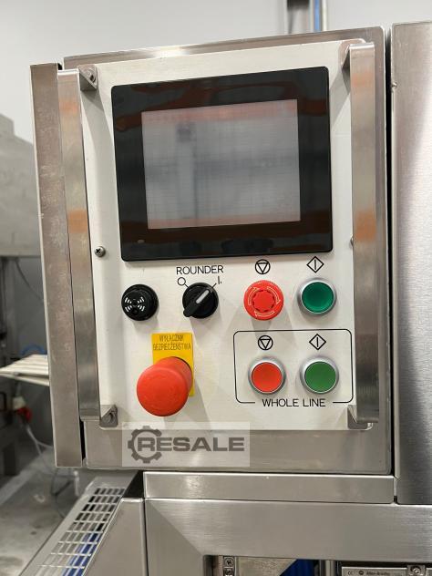 Maszyna do formowania i ważenia ciasta RHEON, typ: V4 Free Divider VX122 z podwójną stacją wysiewającą bmTEC Do produkcji chleba i bułek. - Bardzo delikatna praca na cieście - Grawimetryczny system ważenia i sprzężenia zwrotnego - Równomierne formowanie arkusza ciasta - Walcarka krzyżowa do regulacji szerokości taśmy ciasta - Okrągłe ostrza tnące - Usuwanie resztek ciasta - Podziel wagowo każdy pojedynczy kawałek ciasta w sekcji ważenia - W zestawie stacja wysiewu bmTEC - W tym osiadanie na blasze - Stan: Bardzo dobry, gotowy do użycia Specyfikacje: - Wydajność: ok. 800 kg/h - Szerokość taśmy do ciasta V4: 200 mm - Grubość pasa ciasta (przed walcarką poprzeczną): 20-35 mm - Prędkość taśmy: 60 ~ 240 m / h - Wymiary: długość 5 420 x szerokość 1 410 x wysokość 1 726 mm Wizyty i jazdy próbne są możliwe po uzgodnieniu.