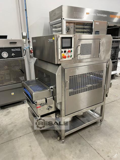 Przegroda bezstresowa Rheon V4 Typ VX 202 -400 Rok budowy: 2011 Wydajność ok. 400kg/h Szerokość taśmy do ciasta 130-150mm Waga produktu ok. 50 -1 250g z gilotyną jedno i dwurzędową ze stacją rozsiewającą z dwurzędowymi taśmami ważącymi i odbiorczymi z smarowaniem nożem gwiaździstym z 2 mąkami ze sterowaniem cyfrowym z lejkiem na ok. 50kg ciasta - po remoncie i oczyszczeniu - Odnowione taśmy, maty lejkowe, węże, różne łożyska itp. - Dostępność: ok. 6-8 tygodni od zamówienia