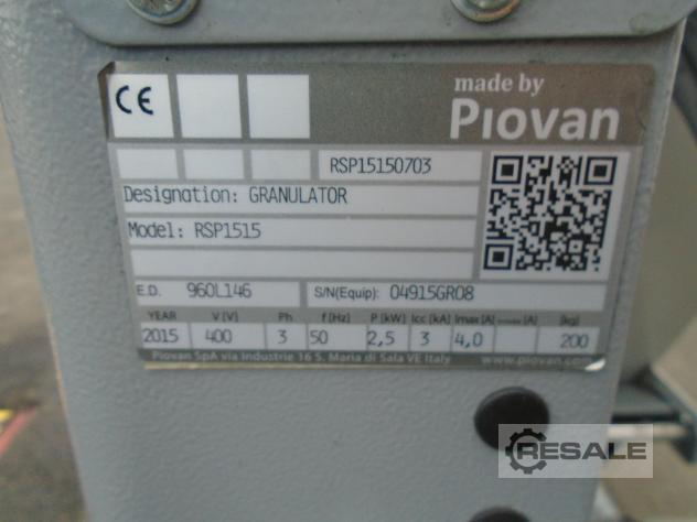 Granulator Load area: 140x140 mm Overall size: 950x500x1300 mm Power: 2,5 kW Weight: 200 kg Technical data: • Designed for beside the press operation (injection and blow moulding) • 3 knives open rotor • Reversible hopper • Slow rotor speed (250 RPM) • Lateral end discs which turn with the rotor • Standard screen in stainless steel • Quick opening and easy cleaning Processes: • Injection • Blow moulding • Extrusion Designed for: • Small wastes from purgings and castings • Tubes and profiles with small diameter • Trimmings