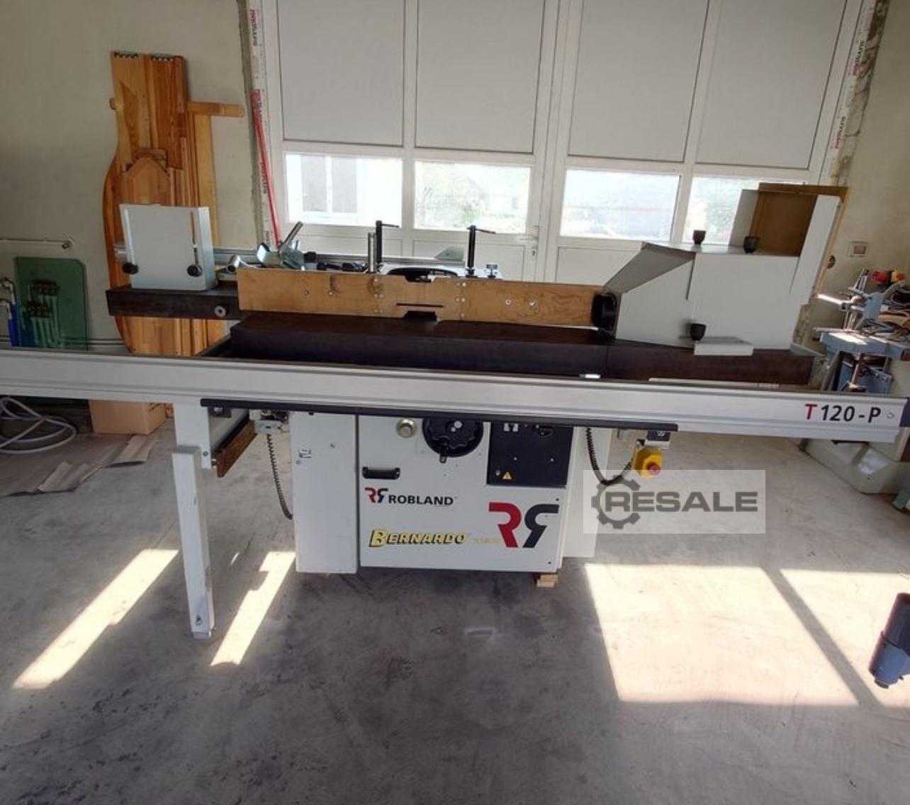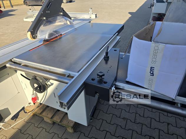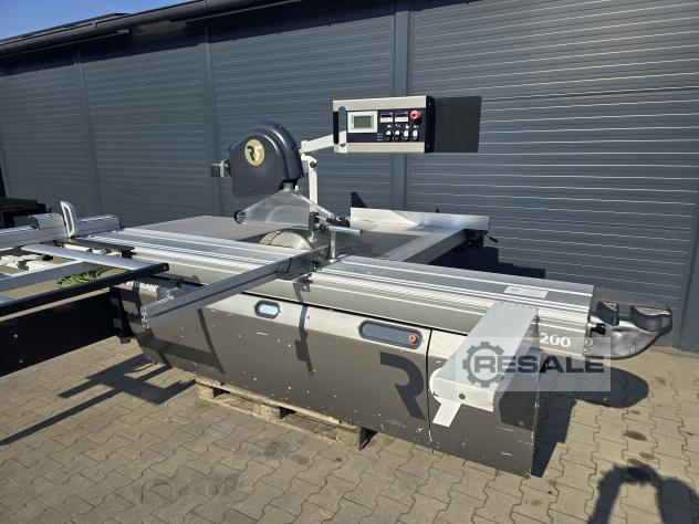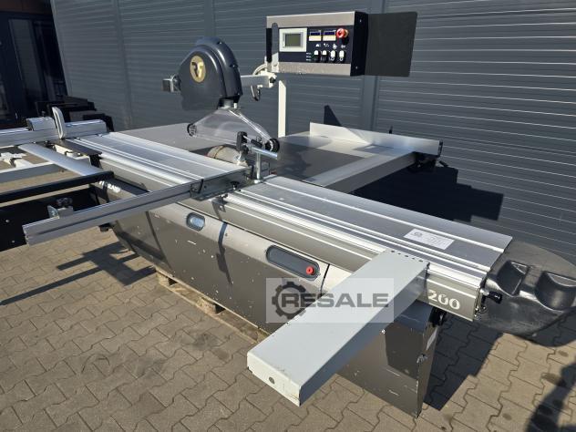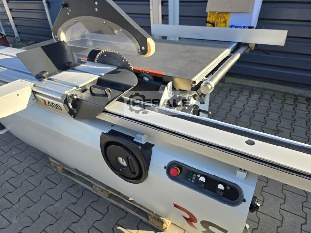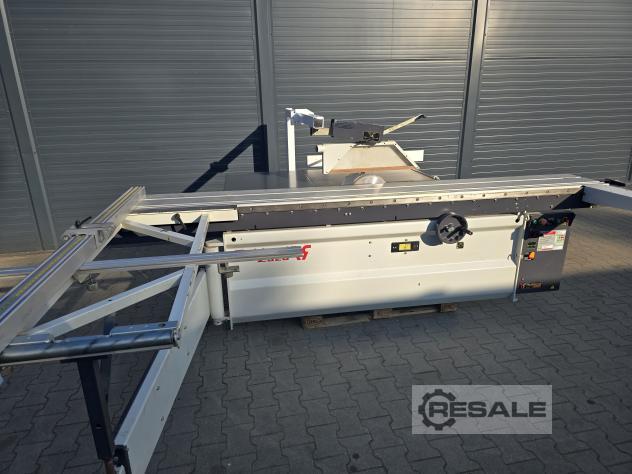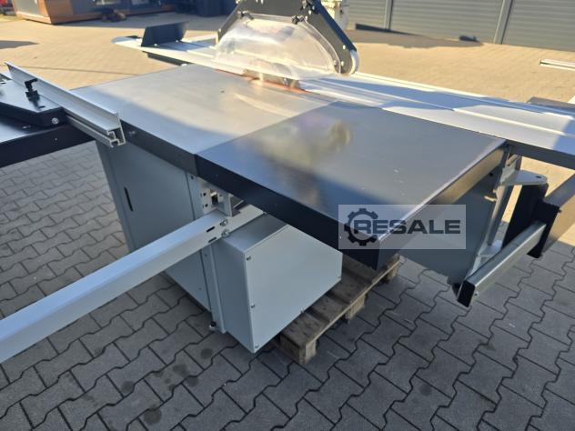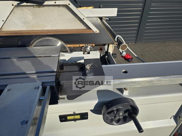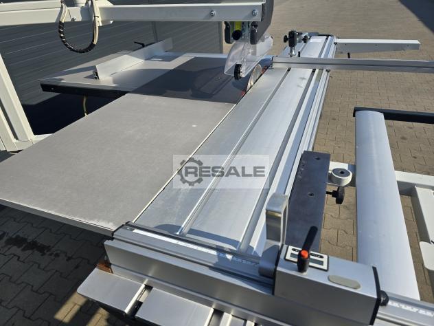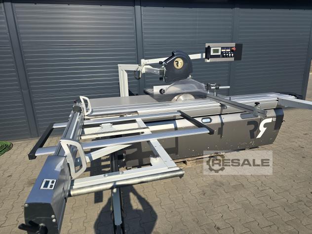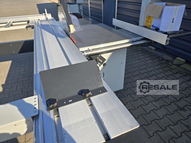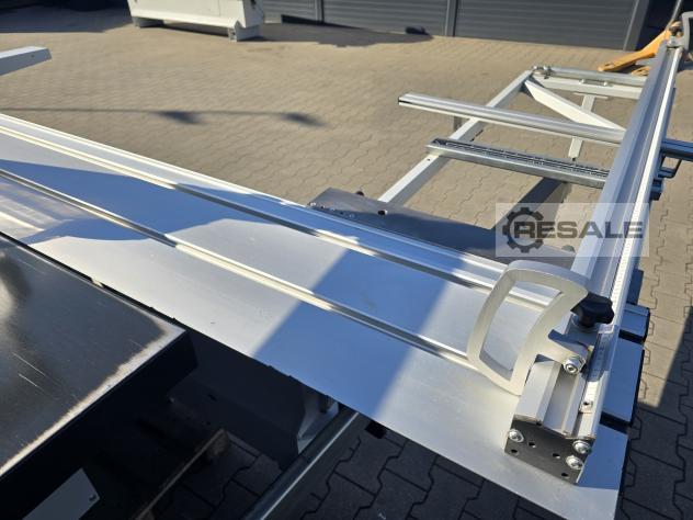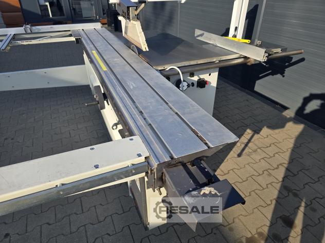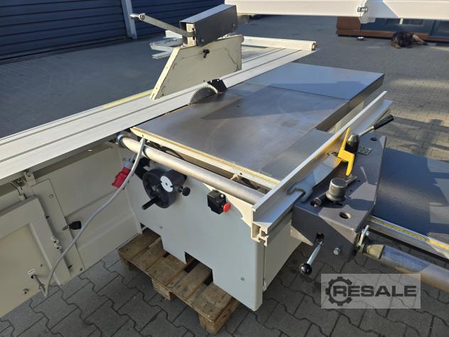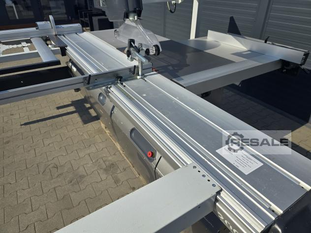 Scie à format coulissante avec chariot Robland 3200 silver line rayage sur un moteur séparé, Longueur de la poussette 320cm Moteur principal 7KW 3 vitesses de rotation disques max 450mm Inclinaison 0-45 réglable électriquement avec affichage Scie montée-descente réglable électriquement sans lecture Culaga sur le côté droit motorisé jusqu’à 1240mm Lecteurs numériques sur un Culaga sur un chariot Outil d’angle inclus Machine de marque en très bon état,