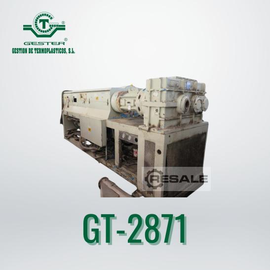 Экструдер 1 шпиндель: 130 мм Ø, 35 l / D, для гранулированных пластмасс, марка: Plasco, с принудительной подачей. Дегазатор, с вакуумным насосом: 15 л.с. Устройство смены фильтров: 260 мм, сверху срезано до воды. Вибрационный экран и двигатель: 238 кВт с приводом с переменной скоростью и электрической панелью. ГТ-2982