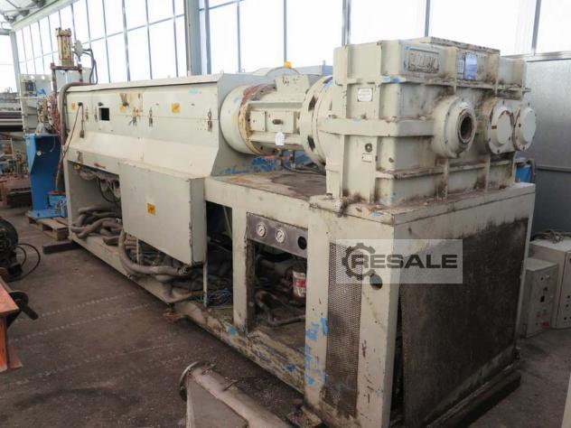Экструдер 1 шпиндель: 120 мм Ø, 35L/D, марка: Union, с дегазатором, гидравлическим фильтром: 150. Год появления: 1987.