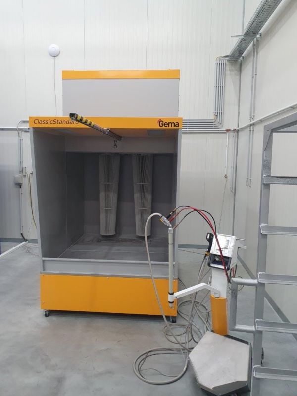 Установка порошковой окраски печей, кабин и т.д. Камера для порошковой окраски Открытая стойка для распыления Размеры уровня порошка Ширина 2 000 мм Глубина 2 100 mm Высота 2 200 мм Вентилятор 1 шт. 6000 м³/ч Мощность 3 кВт (электродвигатель) Фильтр 4 типа фильтрующих картриджей (à ⌀325 x 600 [мм]) Электромагнитные клапаны 2 шт. 1" "Turbo" Италия Абсолютный фильтр Рукавный фильтр 1 шт. Пороховой пистолет Вагнера "Prima Sprint" Стандартная сеть 230 В переменного тока Частота 50 – 60 Гц Входной сжатый во ...