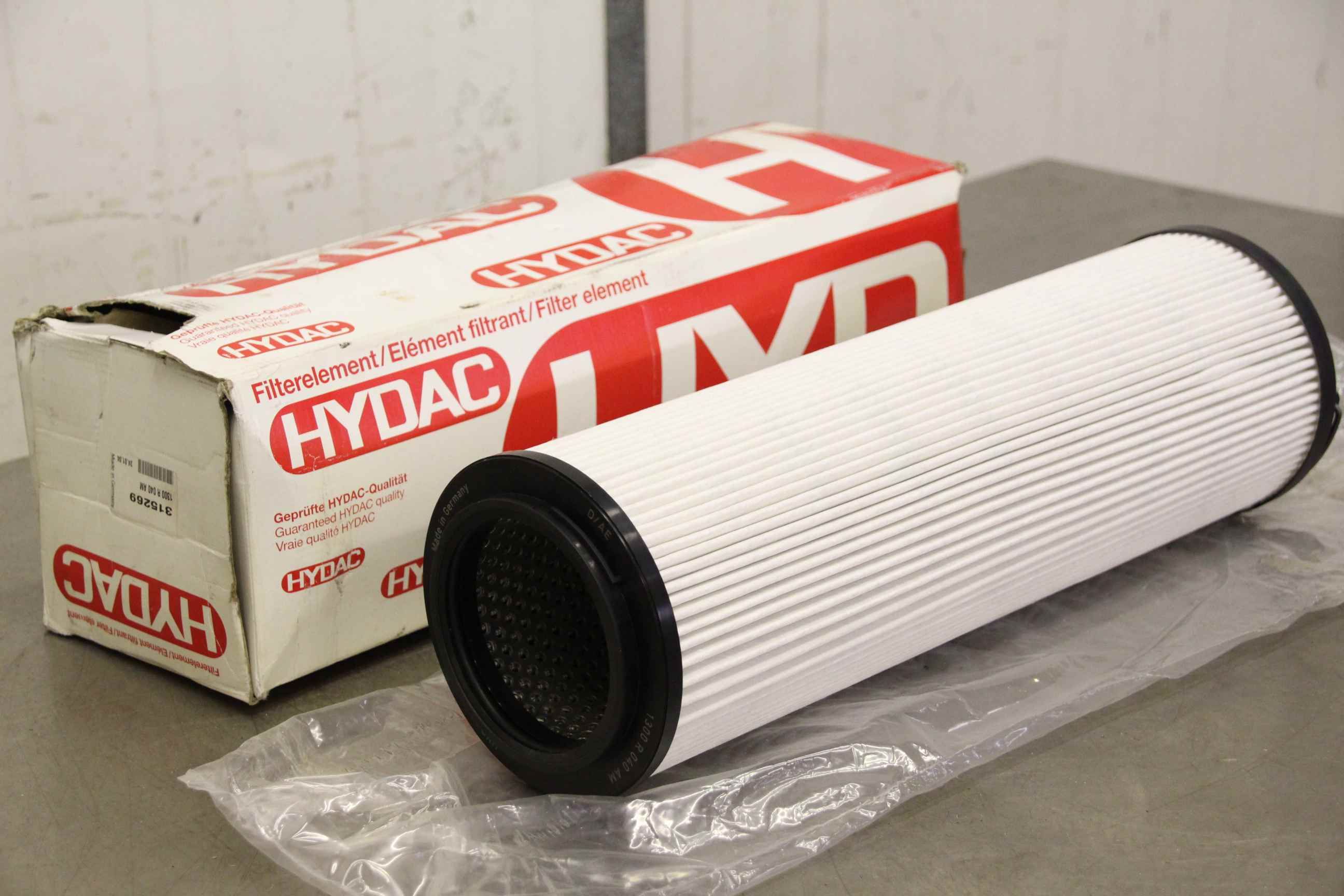 Hydraulic filter, filter element-Manufacturer: Hydac, filter element OVP-Type: 1300 R 040 AM-Dimension: Ø 144 x 483 mm-Weight: 4 kg