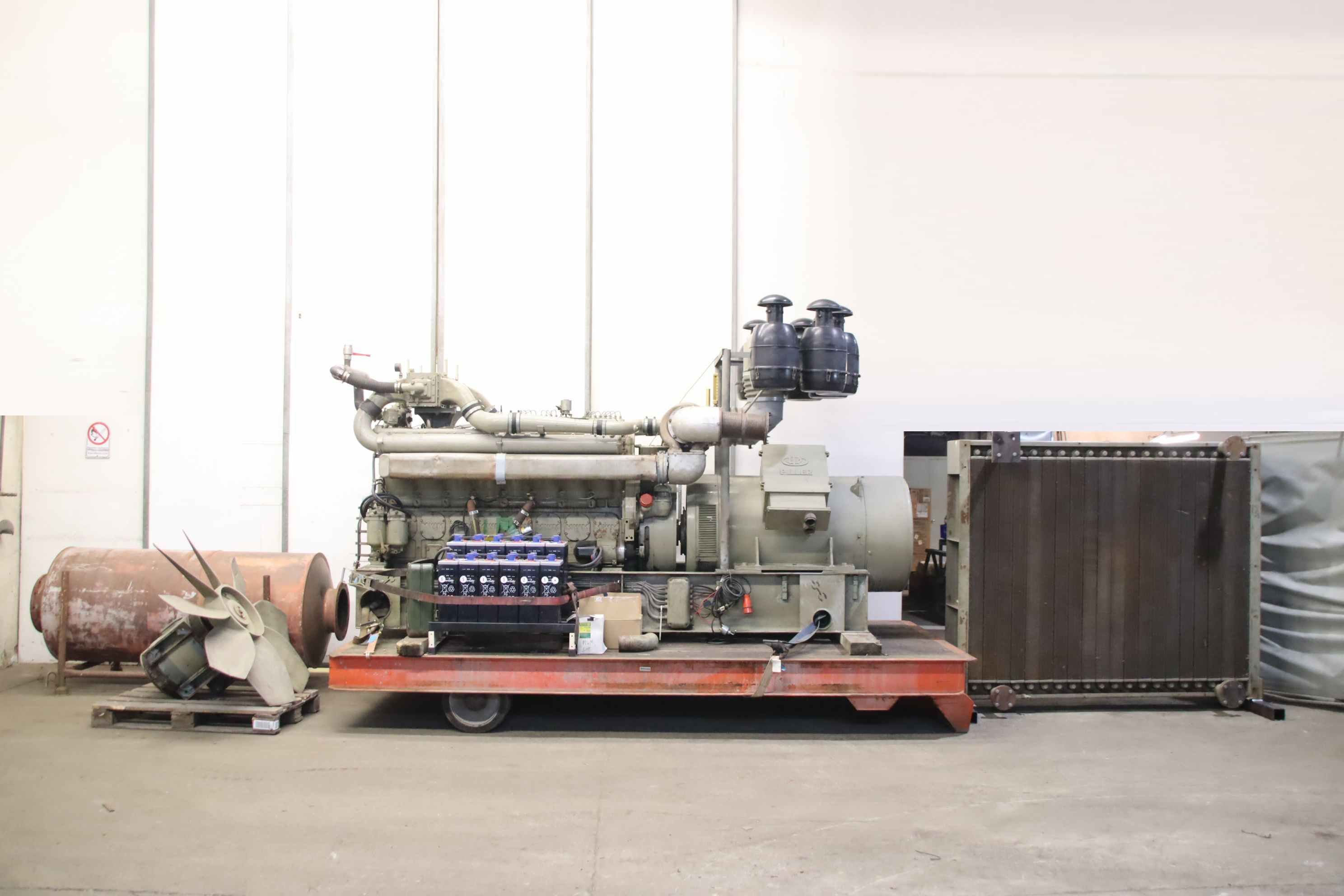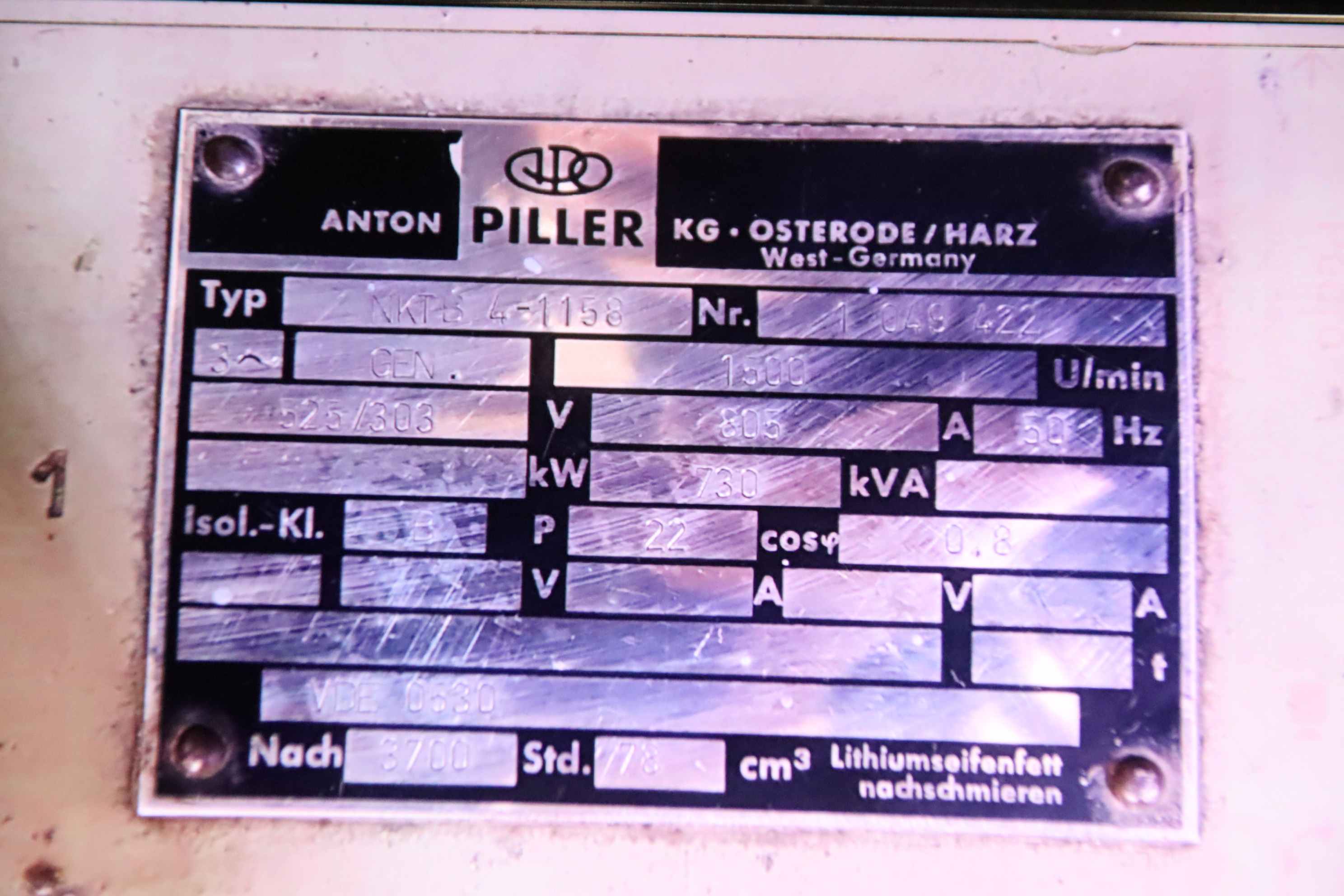 Power generator, emergency power generator, generator, power generator, power generator, emergency power generator, power generating unit -Manufacturer: PILLER/MWM -Power: 730 kVA 50 Hz -Engine: MWM type TbRHS 518V16, power 850 hp, speed 1500 rpm -Generator: PILLER NKTB 4-1158 -Note: without controls -Individual components: see photos -Transport dimensions: 6 loading meters -Total weight: 8600 kg