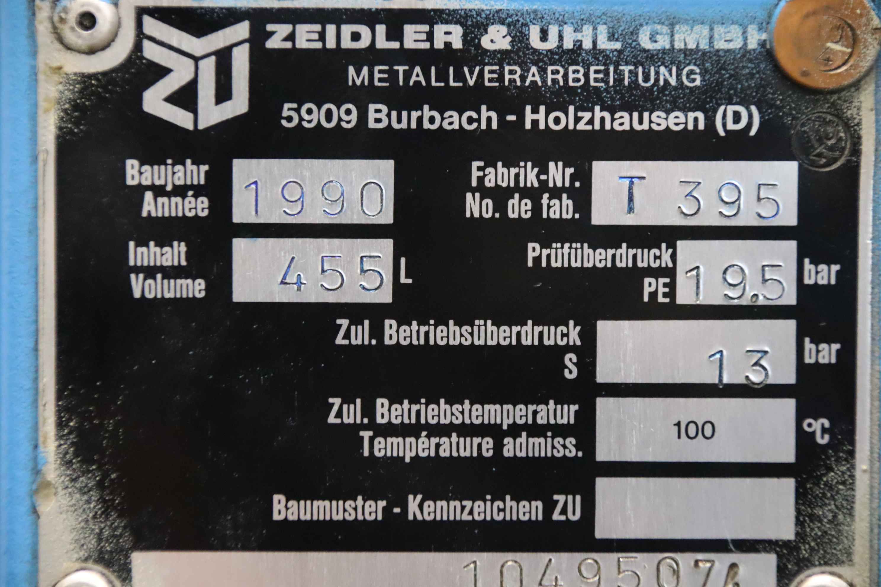 Compressed air tank, pressure vessel, pressure tank, compressed air vessel, pressure vessel, compressor tank, compressed air tank-Manufacturer: Zeidler & Uhl, vacuum container standing, galvanized-Contents: 455 L-Operating pressure: -0.6 bar / max. 16 bar-Accessories: including attachments see photos-Number: 2x containers available-Price: per piece-Dimensions: 860/650/H1610 mm-Weight: 374 kg/piece