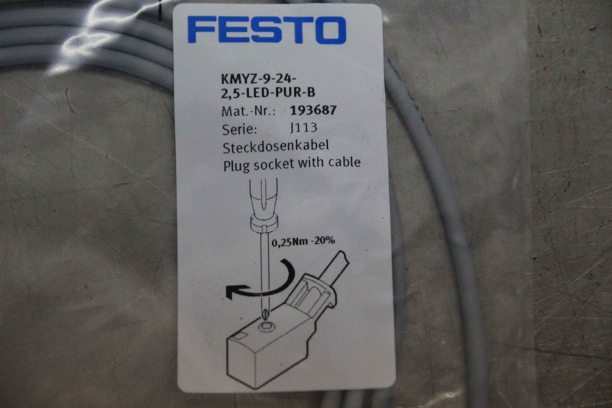 Connection line, connection cable, cable line, socket cable, socket line-Manufacturer: Festo, socket cable unused Ovp-Type: KMYZ-9-24-2,5-LED-PUR-B-Mat no.: 193786-Number: 4x available-Price: per package-Dimension package: 200/180/H10 mm-Weight: 0.1 kg/piece