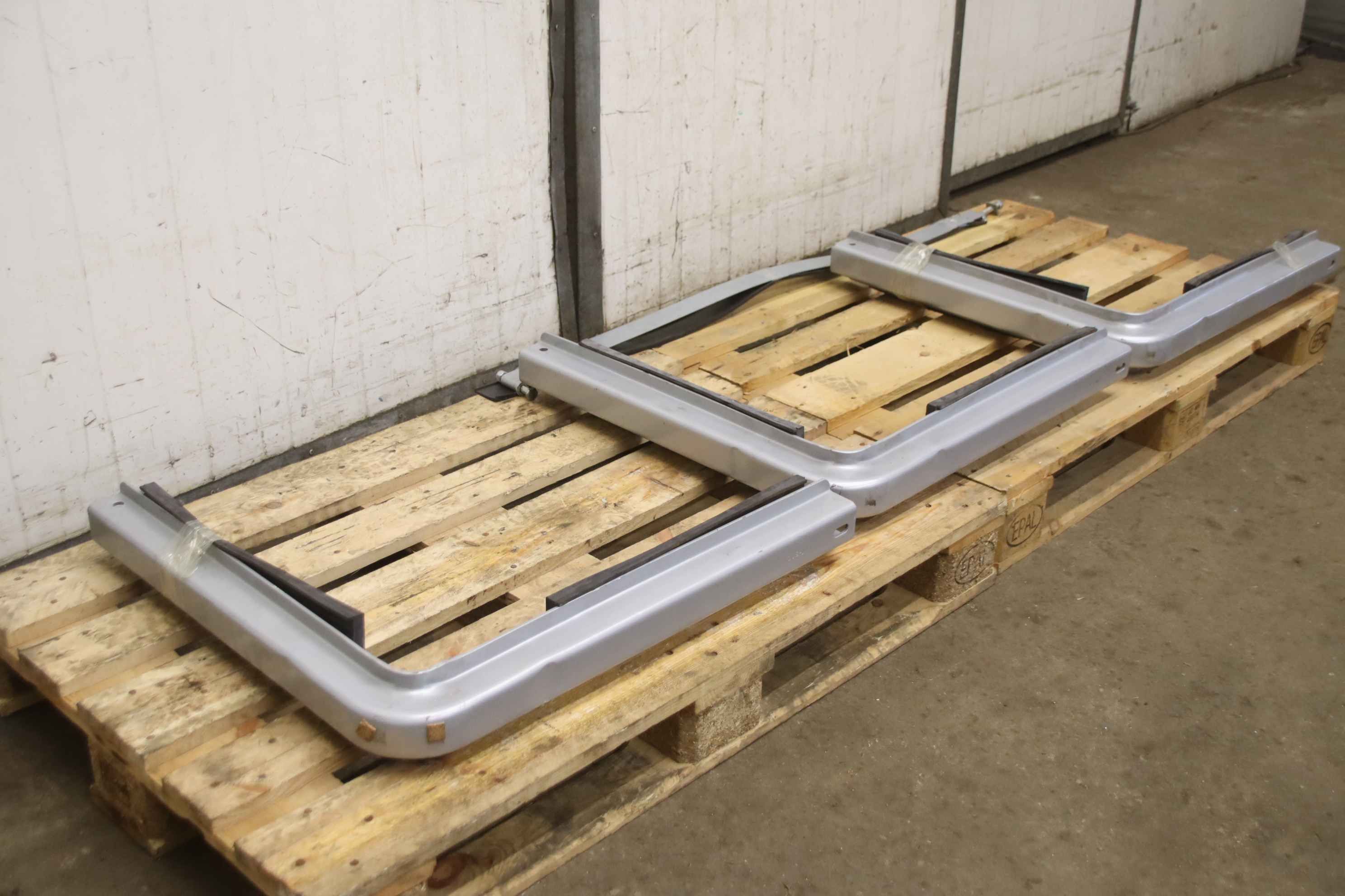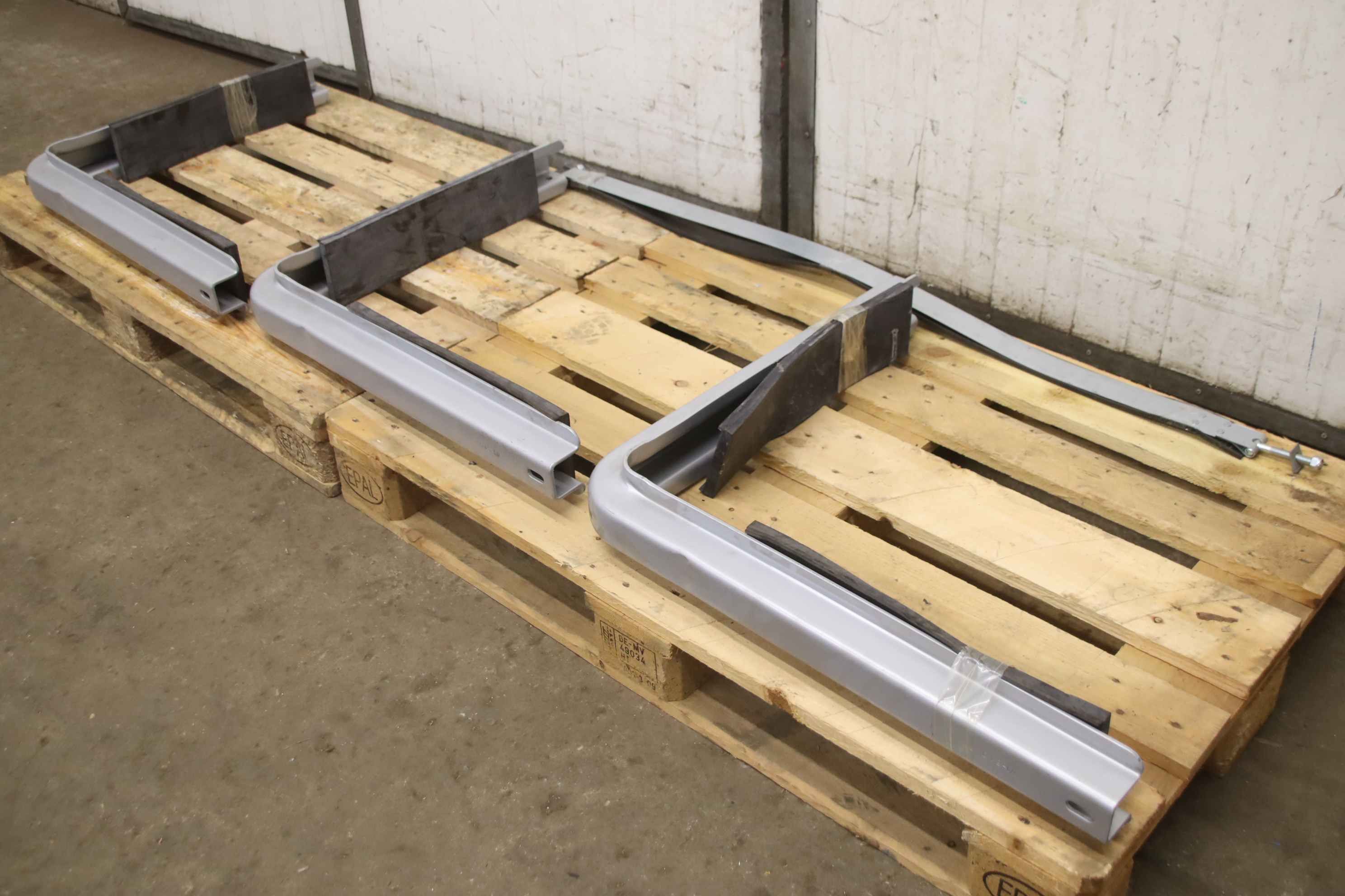 tank bracket, fuel tank bracket, fuel tank strap, fuel tank bracket --Manufacturer: Scania, tank bracket 4 pieces / 3x brackets and 1 strap -Part No.: W1-810 -Suspension: slotted hole 12 x 28 mm -Dimensions: see photo technical drawing -Price/Delivery: complete -Dimensions: 670/735/H100 mm / 1410/50/H2 mm -Total weight: 34.4 kg