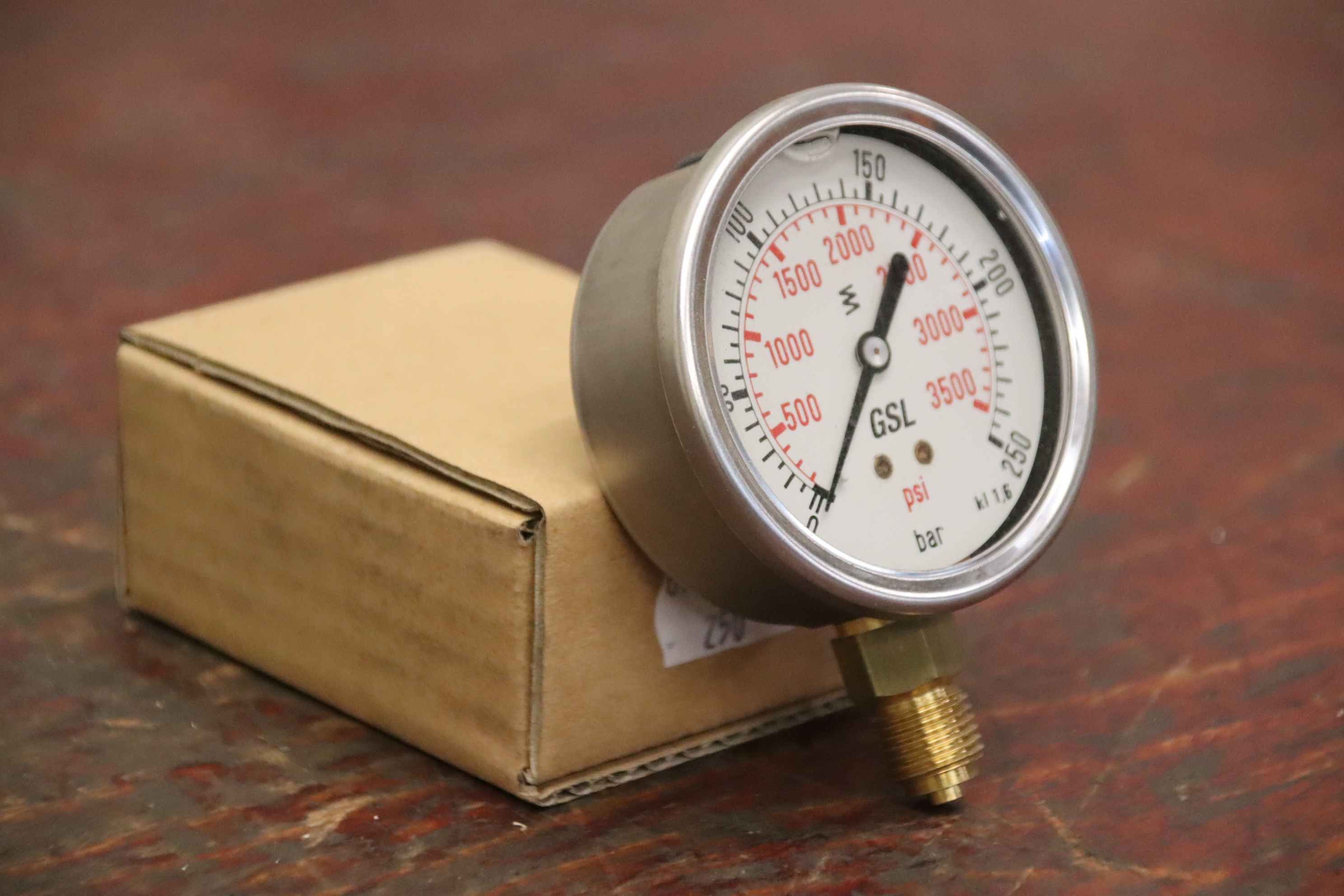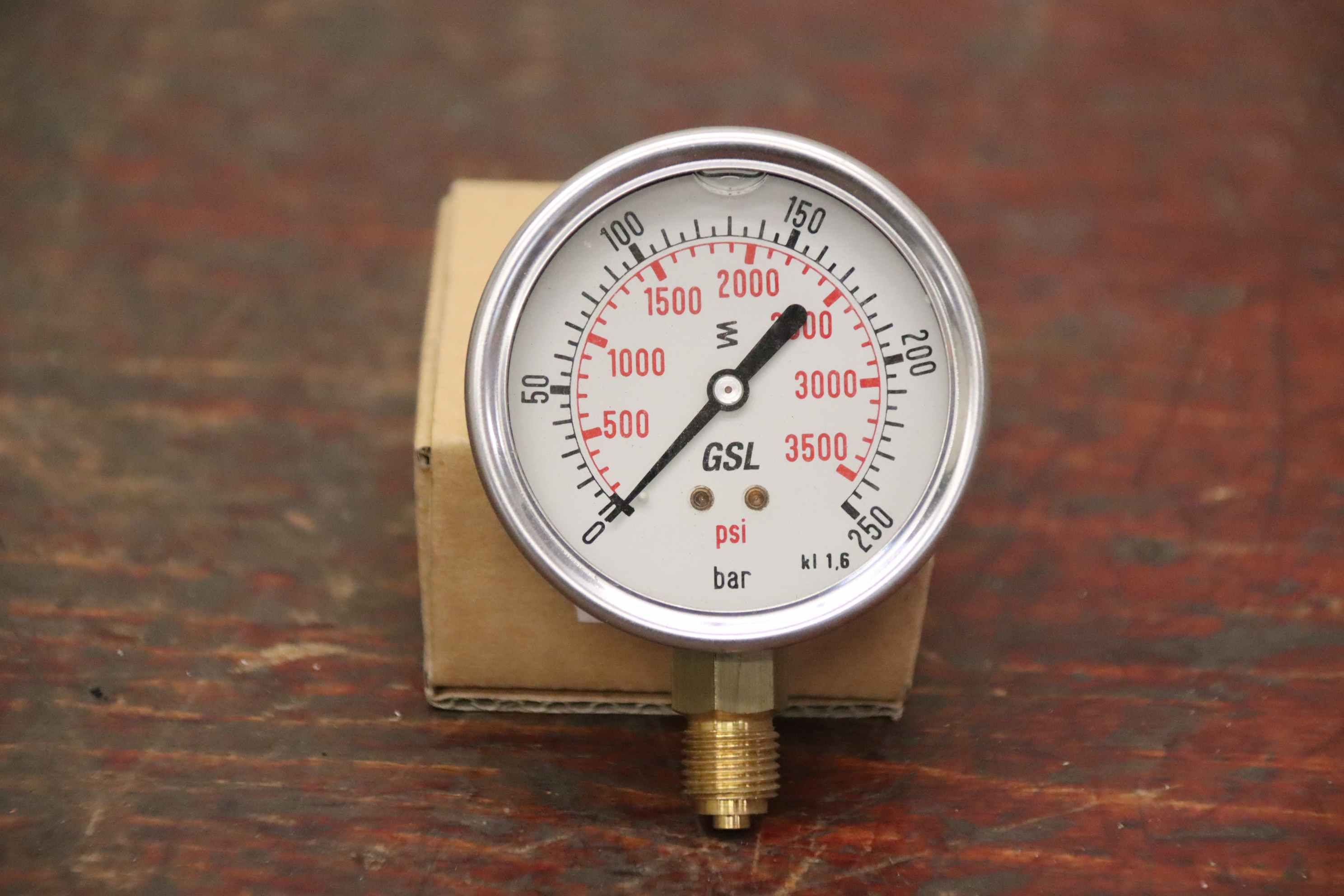 Manometer, test manometer, Bourdon tube pressure gauge, pressure-temperature measurement technology -Manufacturer: GSL, pressure gauge with glycerine filling. -Type: 0 to 250 bar -Screw connection: see photos -Number: 103x pressure gauges available -Price: per piece / from 2 pieces 12,- /piece / from 10 pieces 10,- /piece -Dimensions box: 90/70/H40 mm -Weight: 0.2 kg/piece