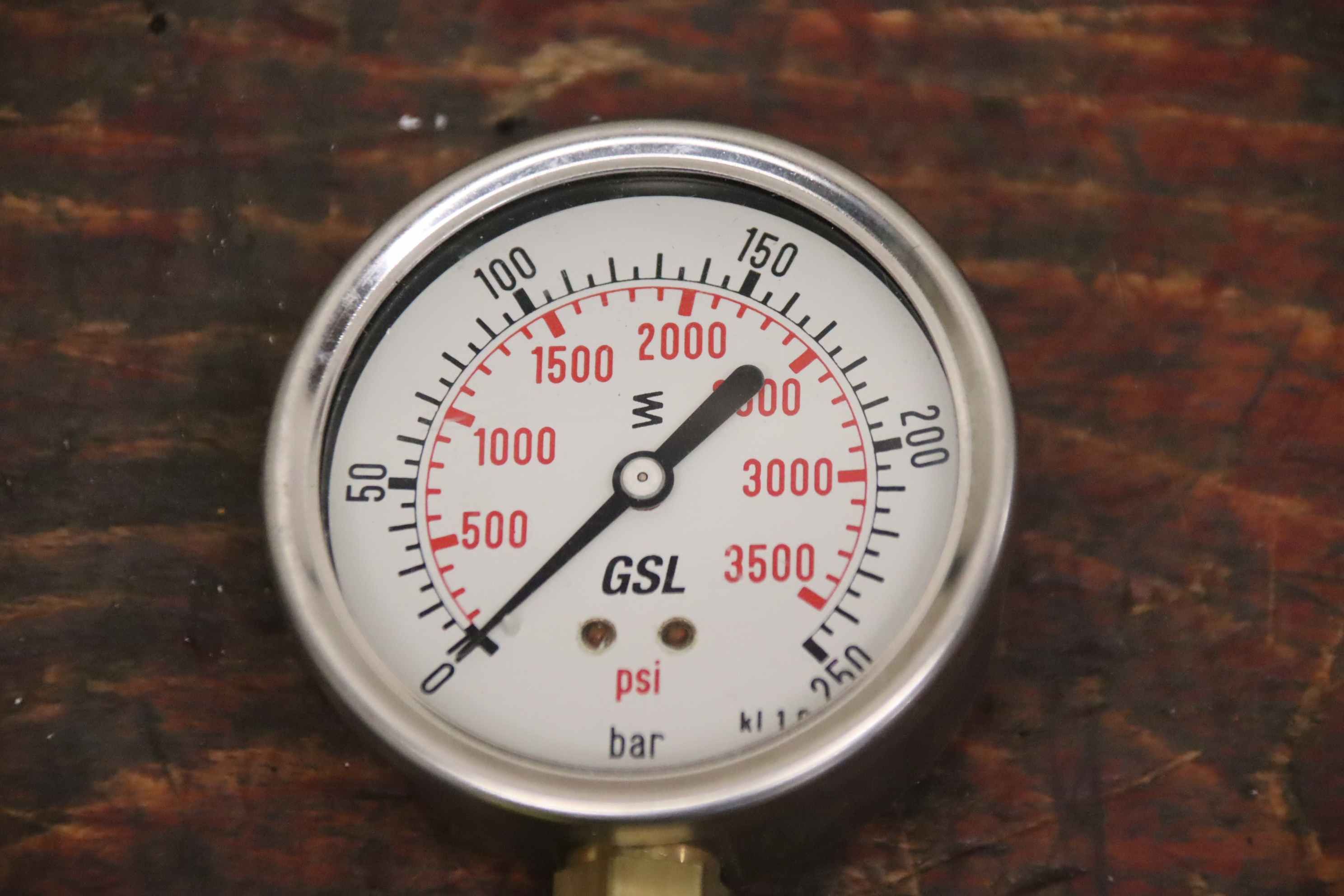 Manometer, test manometer, Bourdon tube pressure gauge, pressure-temperature measurement technology-Manufacturer: GSL, pressure gauge with measuring hose-Type: 0 to 250 bar-Screw connection: see photos-Number: 30x manometers with measuring hose available-Price: per piece / from 2 pieces 40,- /piece.-Transport dimensions: Ø 68 x 200 mm-Weight: 0.3 kg/piece