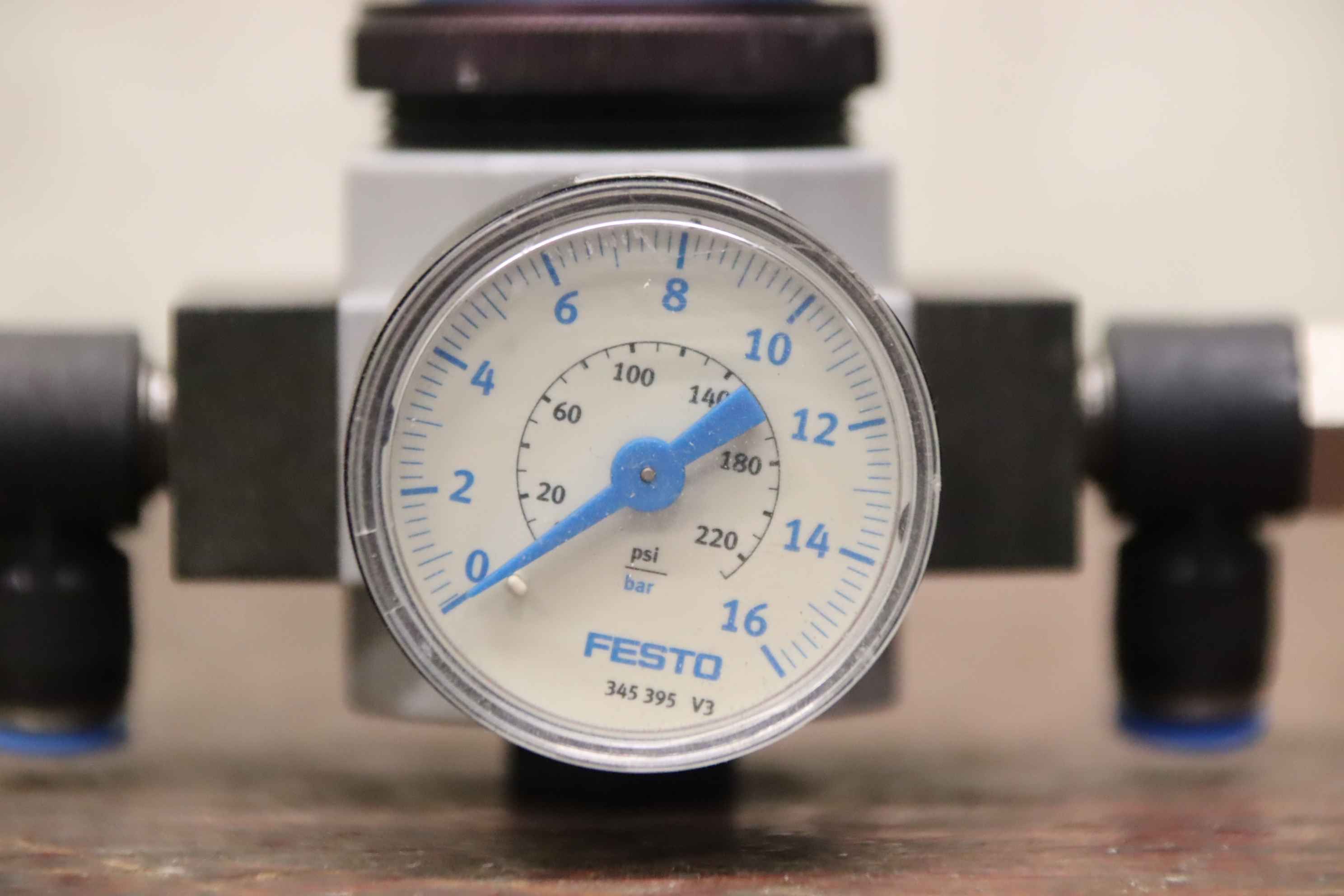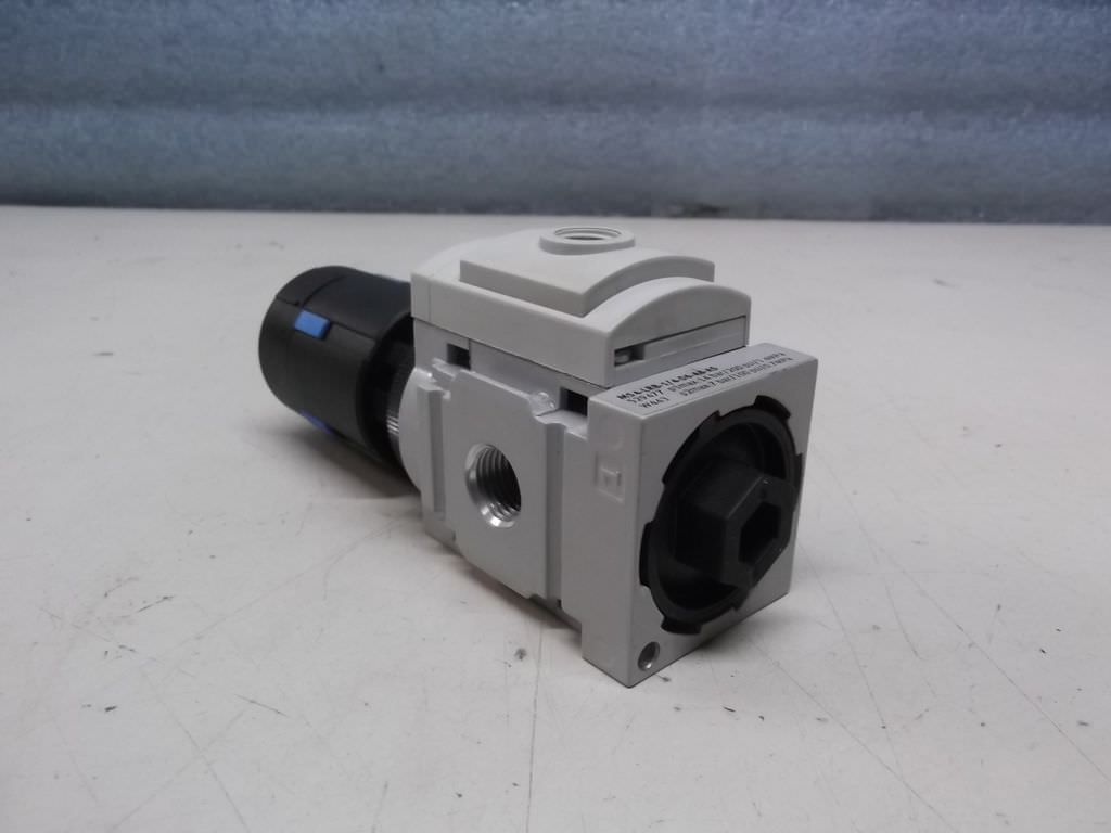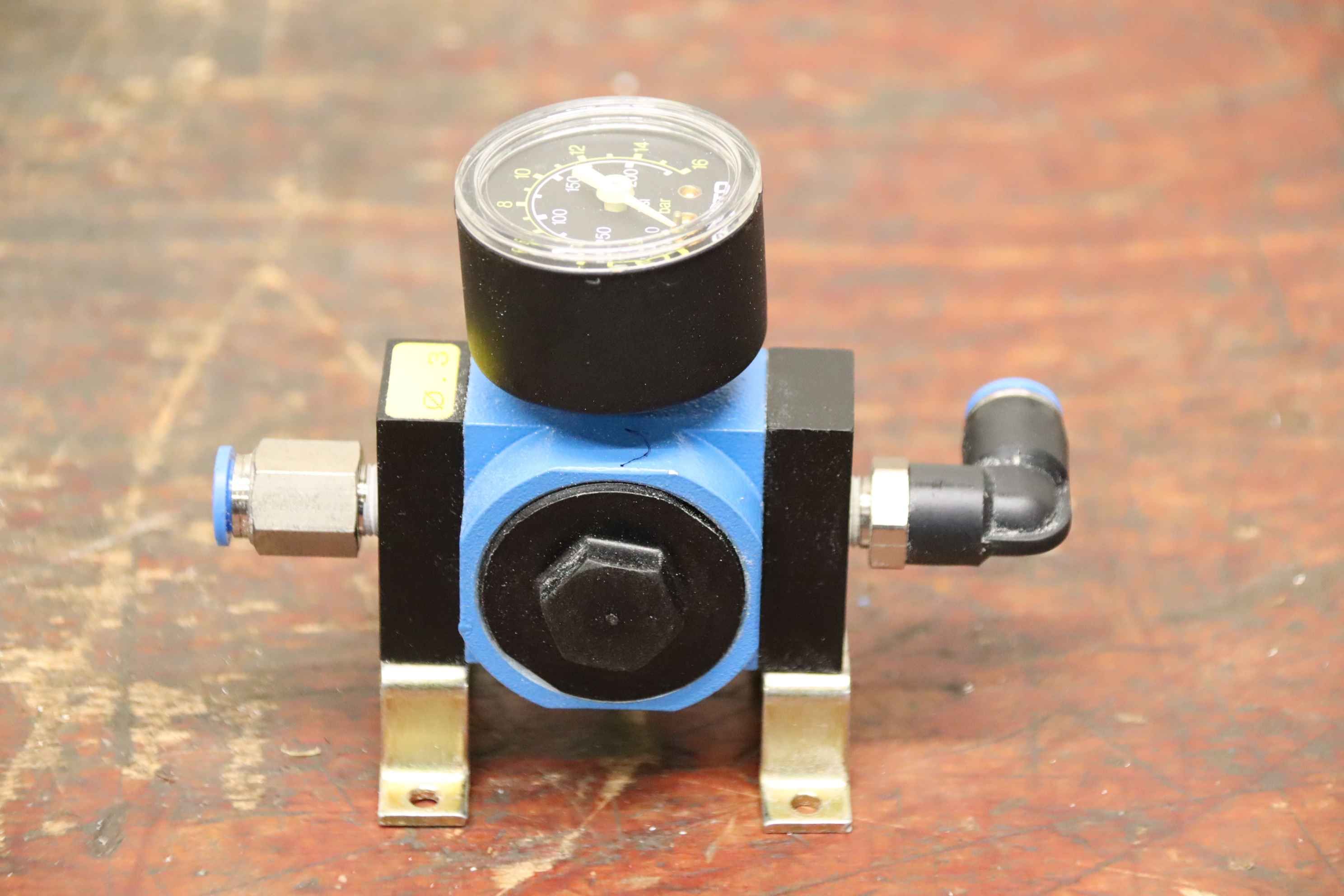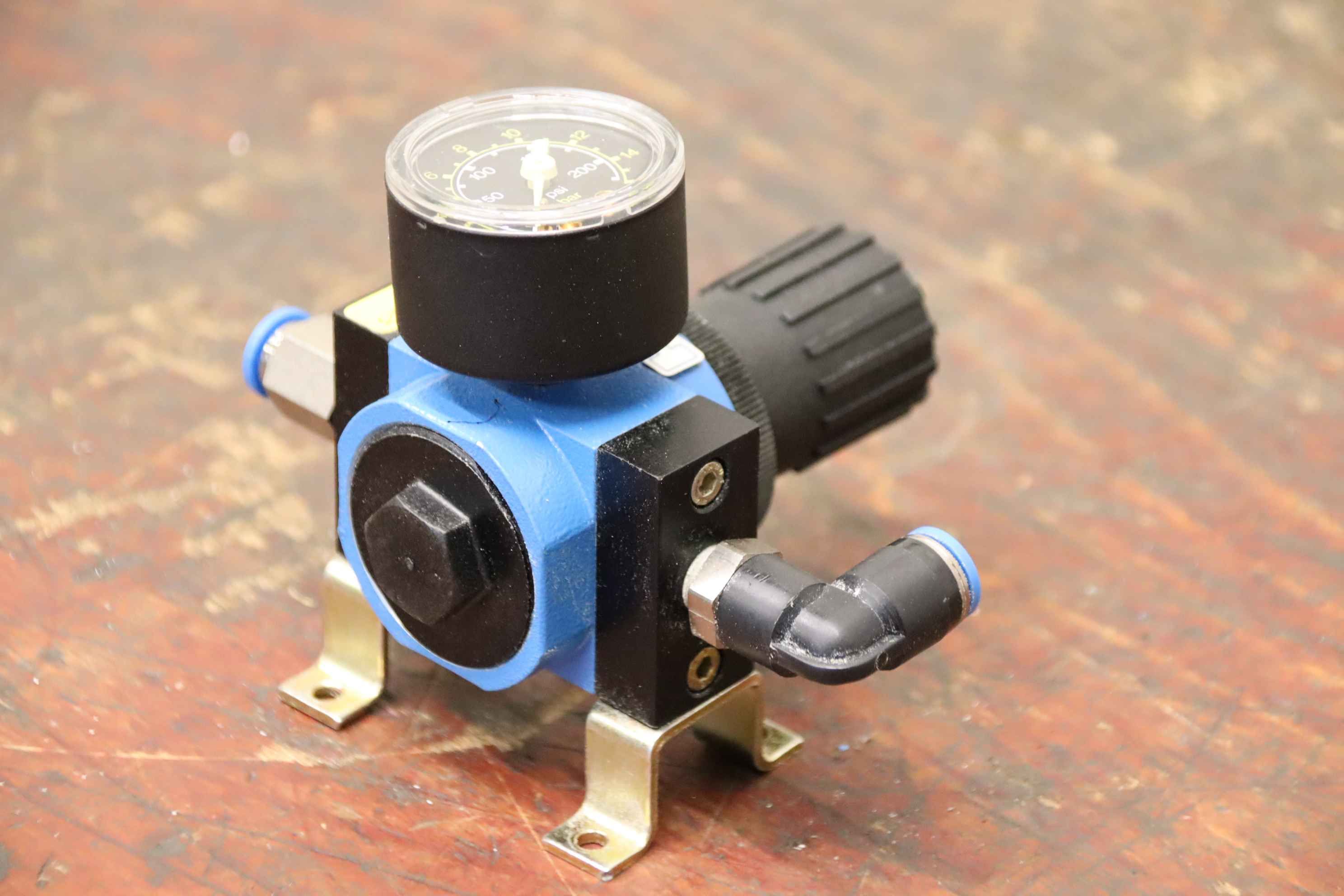 Pressure control valve, pressure control directional valve -Manufacturer: Festo, pressure regulator valve -Type: LR-D-7-I-MINI 192299 -Operating pressure: 0-4 bar -Pressure: max. 16/7 bar, see photo nameplate -Number: 3x valves available -Price: per piece -Dimensions: 110/80/H95 mm -Weight: 0.5 kg/piece
