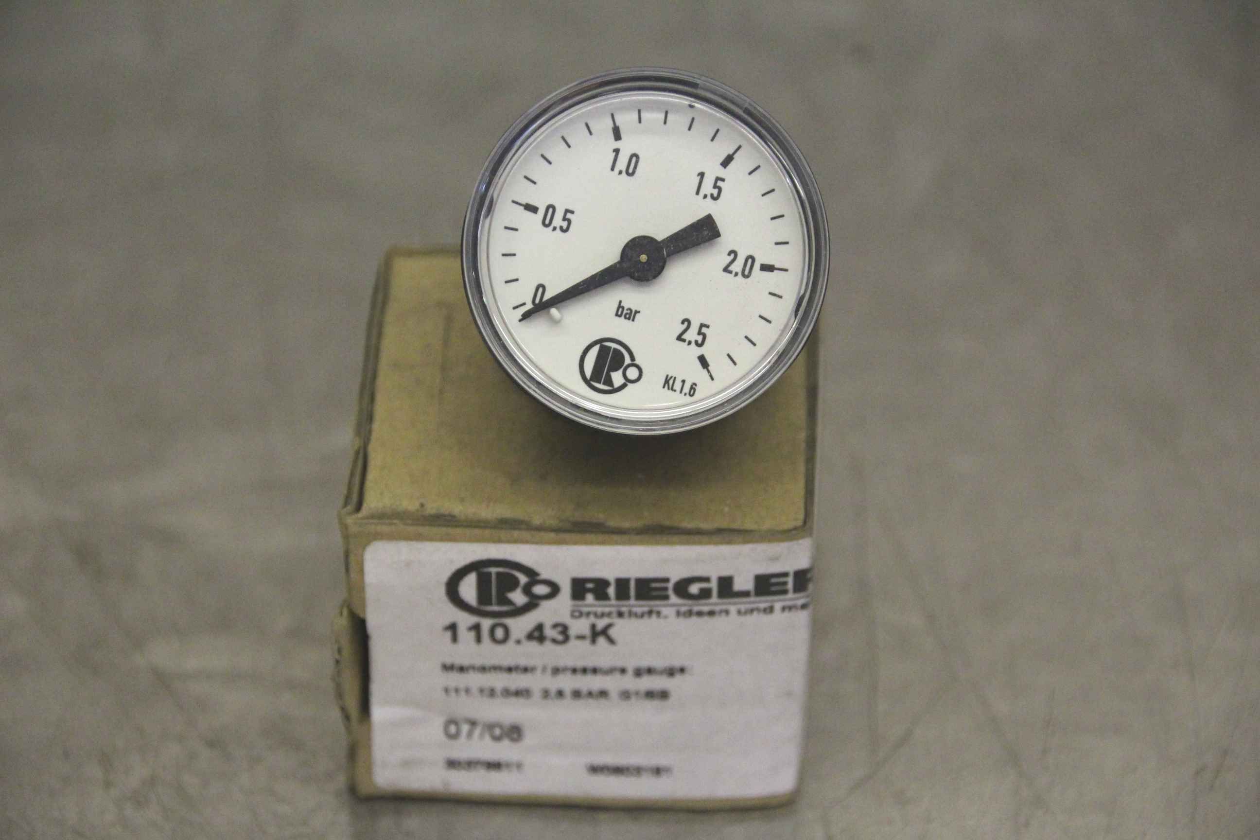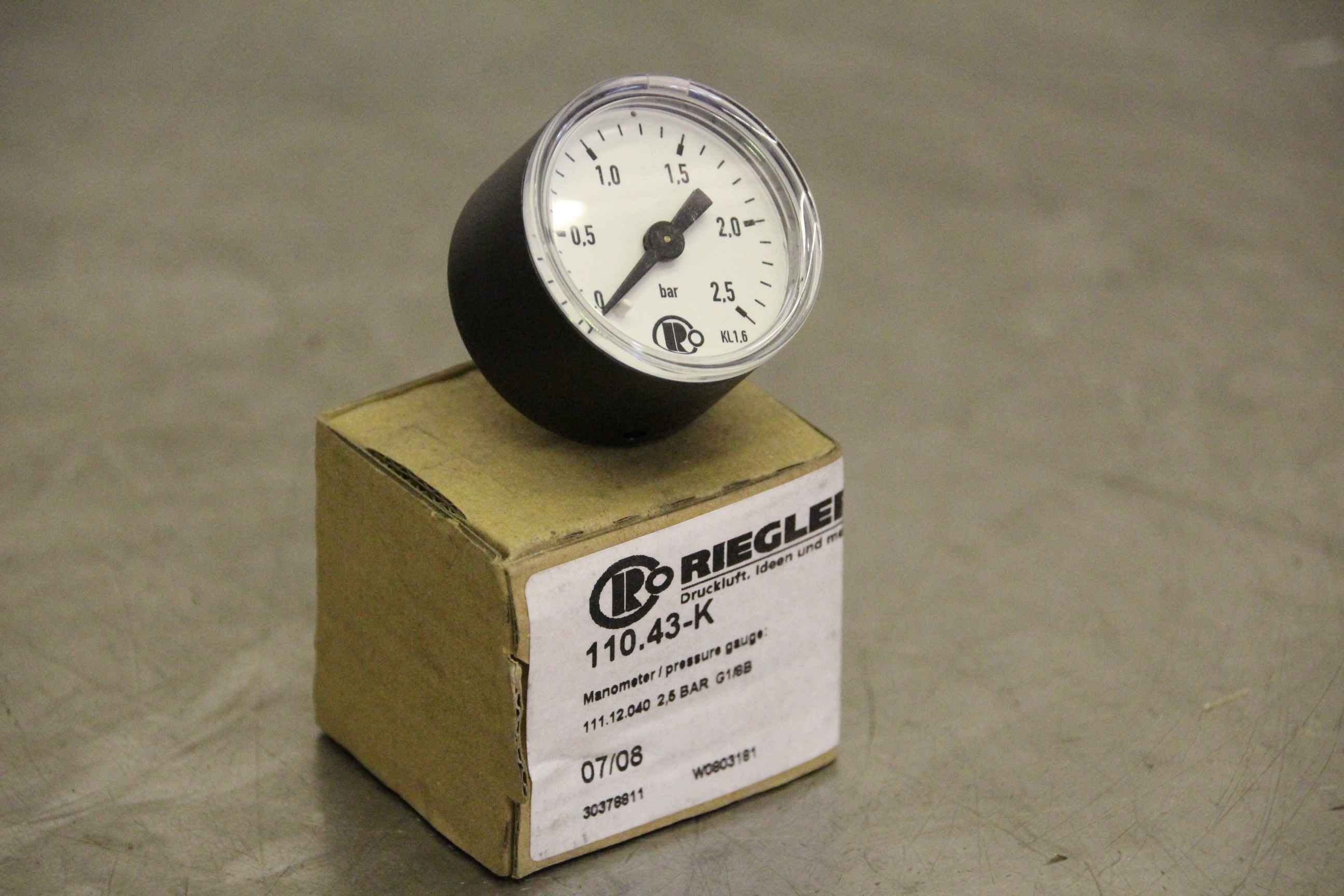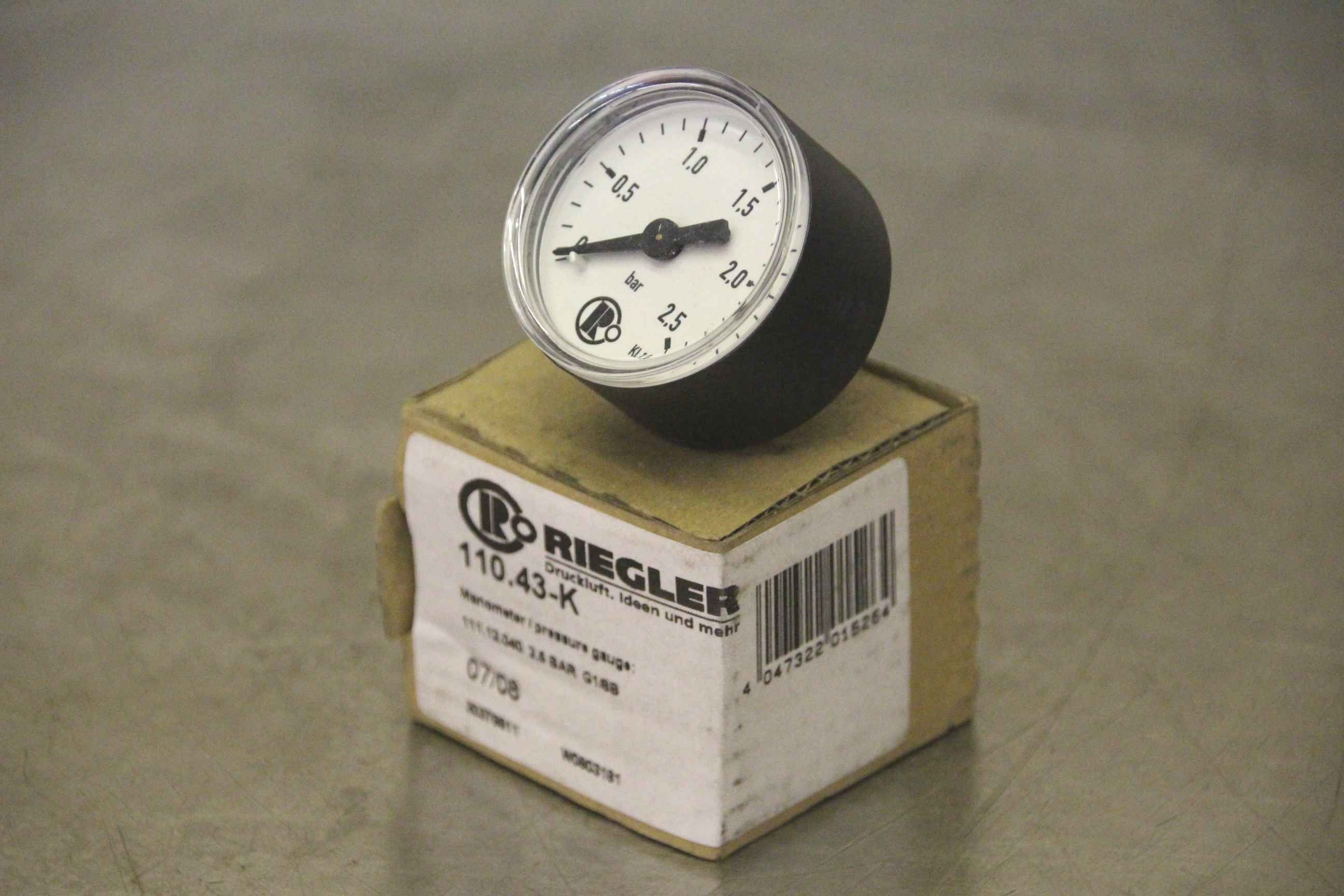 Manometer, test manometer, pressure measuring device with Bourdon tube, pressure-temperature measurement technology-Manufacturer: Riegler, manometer-Type: 110.43-K 0 to 2.5 bar-Screw connection: G1/8 B-Price: per piece-Number: 9 piece-Dimension box: 50/45/H40 mm-Weight: 0.1 kg/piece